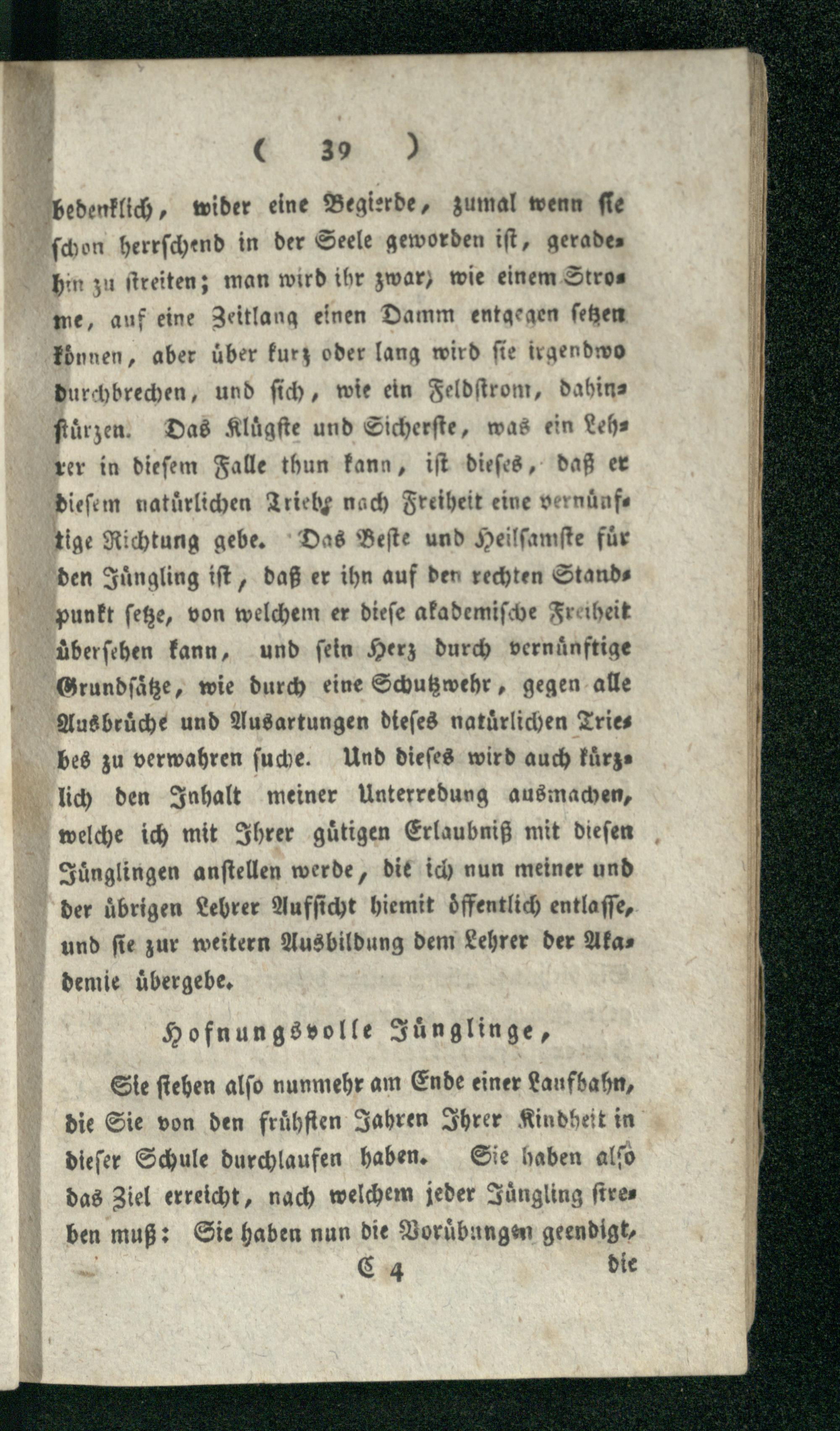 Ueber die eingebildete academische Freiheit und ihren schädlichen Einfluß auf die Schulen. Von eben demselben. Bei einer öffentlichen Dimission einiger Jünglinge auf die Universität gehalten.