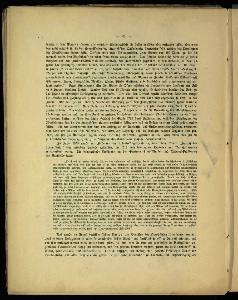 Geschichte der französischen Kolonie in Brandenburg-Preußen, unter besonderer Berücksichtigung der Berliner Gemeinde ; zur Veranlassung der zweihundertjährigen Jubelfeier am 29. Oktober 1885 / im Auftr. d. Konsistoriums d. Französischen Kirche zu Berlin u. unter Mitw. d. hierzu berufenen Komitees auf Grund amtlicher Quellen bearb. von Ed. Muret