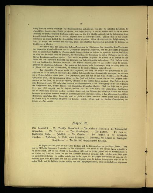 Geschichte der französischen Kolonie in Brandenburg-Preußen, unter besonderer Berücksichtigung der Berliner Gemeinde ; zur Veranlassung der zweihundertjährigen Jubelfeier am 29. Oktober 1885 / im Auftr. d. Konsistoriums d. Französischen Kirche zu Berlin u. unter Mitw. d. hierzu berufenen Komitees auf Grund amtlicher Quellen bearb. von Ed. Muret