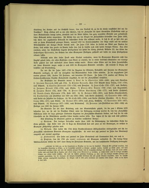 Geschichte der französischen Kolonie in Brandenburg-Preußen, unter besonderer Berücksichtigung der Berliner Gemeinde ; zur Veranlassung der zweihundertjährigen Jubelfeier am 29. Oktober 1885 / im Auftr. d. Konsistoriums d. Französischen Kirche zu Berlin u. unter Mitw. d. hierzu berufenen Komitees auf Grund amtlicher Quellen bearb. von Ed. Muret