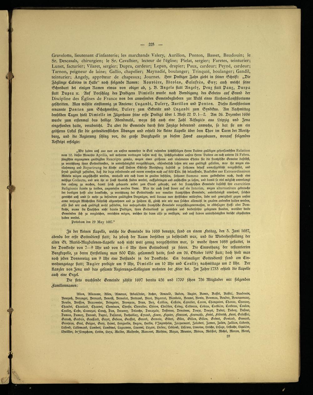 Geschichte der französischen Kolonie in Brandenburg-Preußen, unter besonderer Berücksichtigung der Berliner Gemeinde ; zur Veranlassung der zweihundertjährigen Jubelfeier am 29. Oktober 1885 / im Auftr. d. Konsistoriums d. Französischen Kirche zu Berlin u. unter Mitw. d. hierzu berufenen Komitees auf Grund amtlicher Quellen bearb. von Ed. Muret
