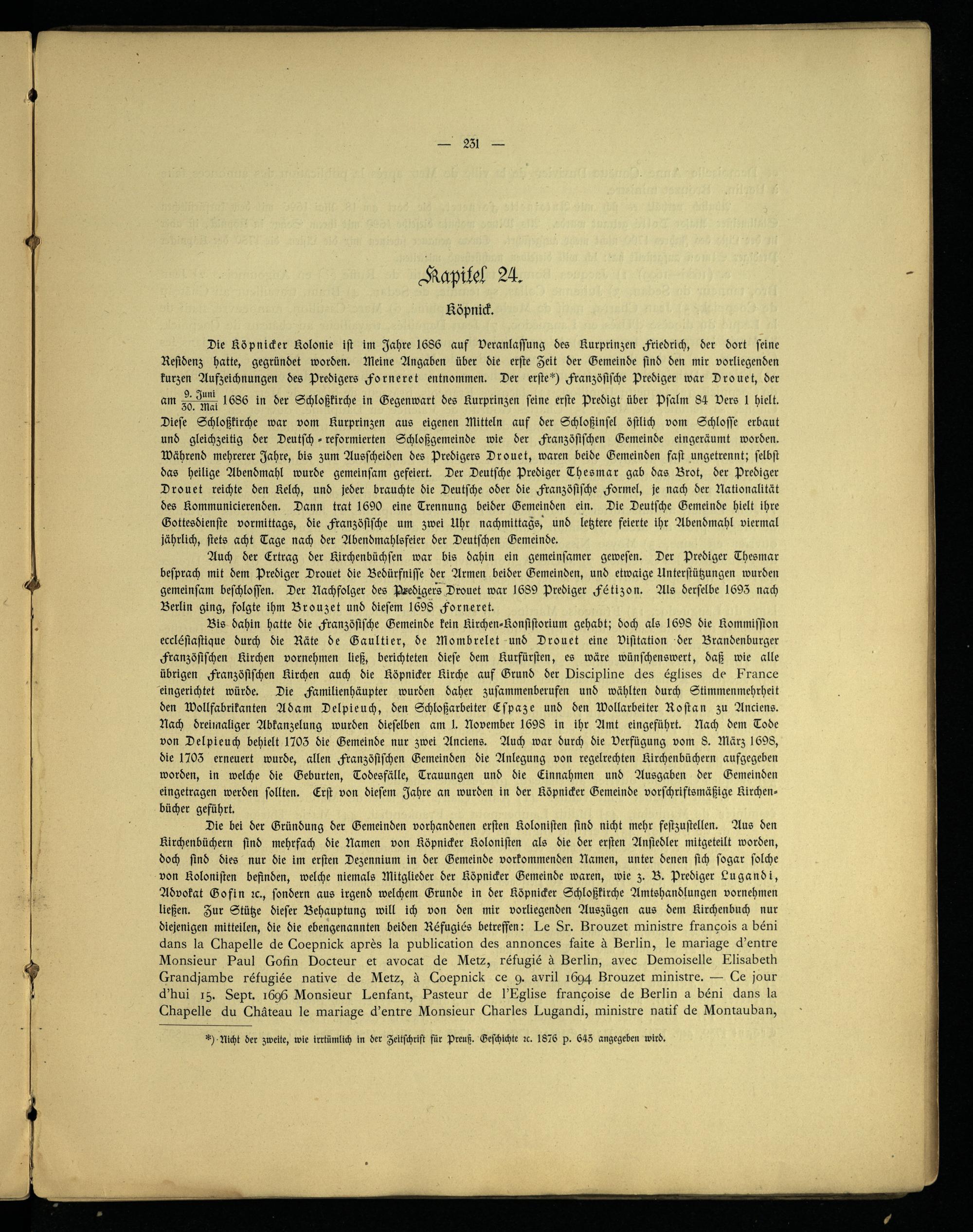 Geschichte der französischen Kolonie in Brandenburg-Preußen, unter besonderer Berücksichtigung der Berliner Gemeinde ; zur Veranlassung der zweihundertjährigen Jubelfeier am 29. Oktober 1885 / im Auftr. d. Konsistoriums d. Französischen Kirche zu Berlin u. unter Mitw. d. hierzu berufenen Komitees auf Grund amtlicher Quellen bearb. von Ed. Muret