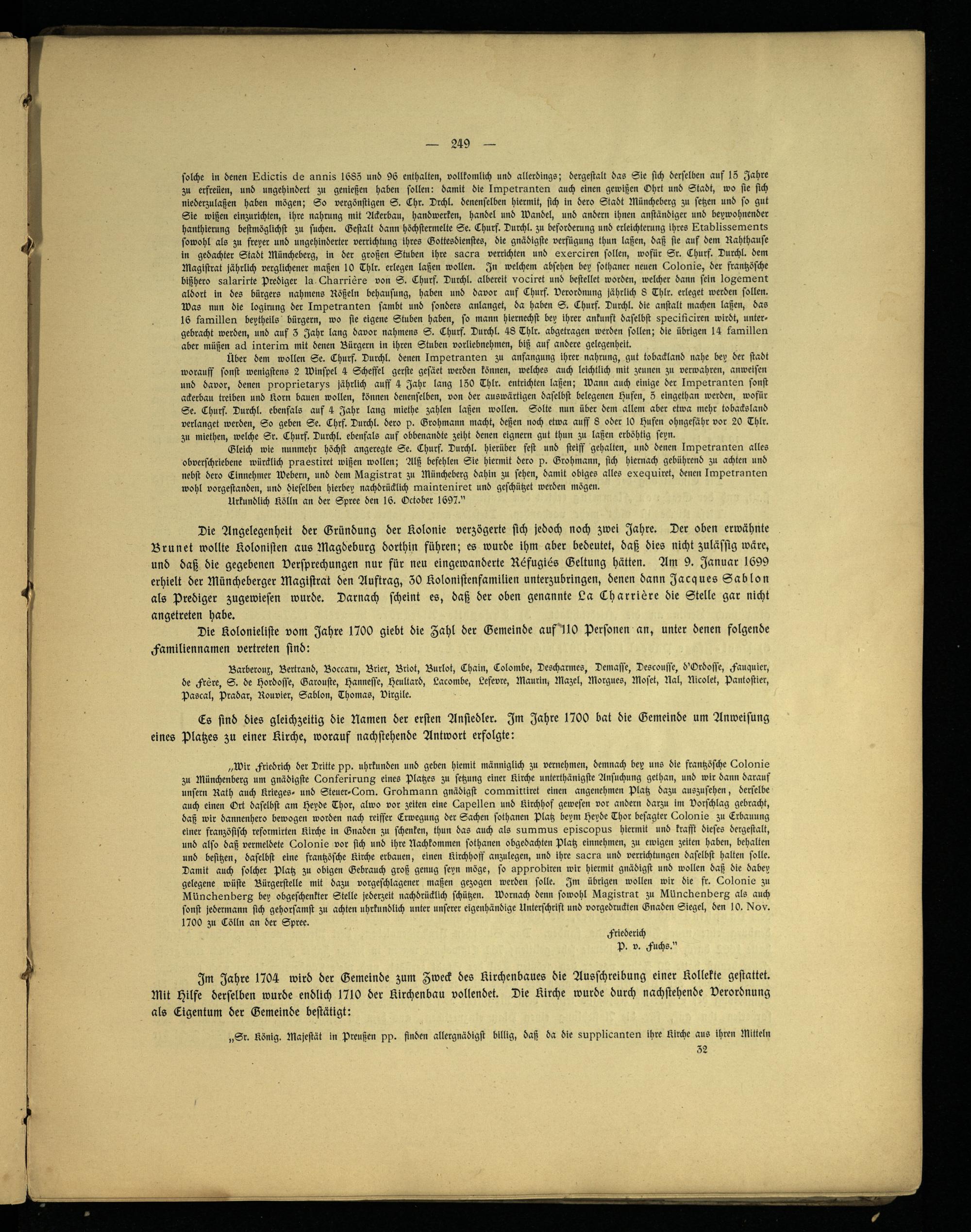 Geschichte der französischen Kolonie in Brandenburg-Preußen, unter besonderer Berücksichtigung der Berliner Gemeinde ; zur Veranlassung der zweihundertjährigen Jubelfeier am 29. Oktober 1885 / im Auftr. d. Konsistoriums d. Französischen Kirche zu Berlin u. unter Mitw. d. hierzu berufenen Komitees auf Grund amtlicher Quellen bearb. von Ed. Muret