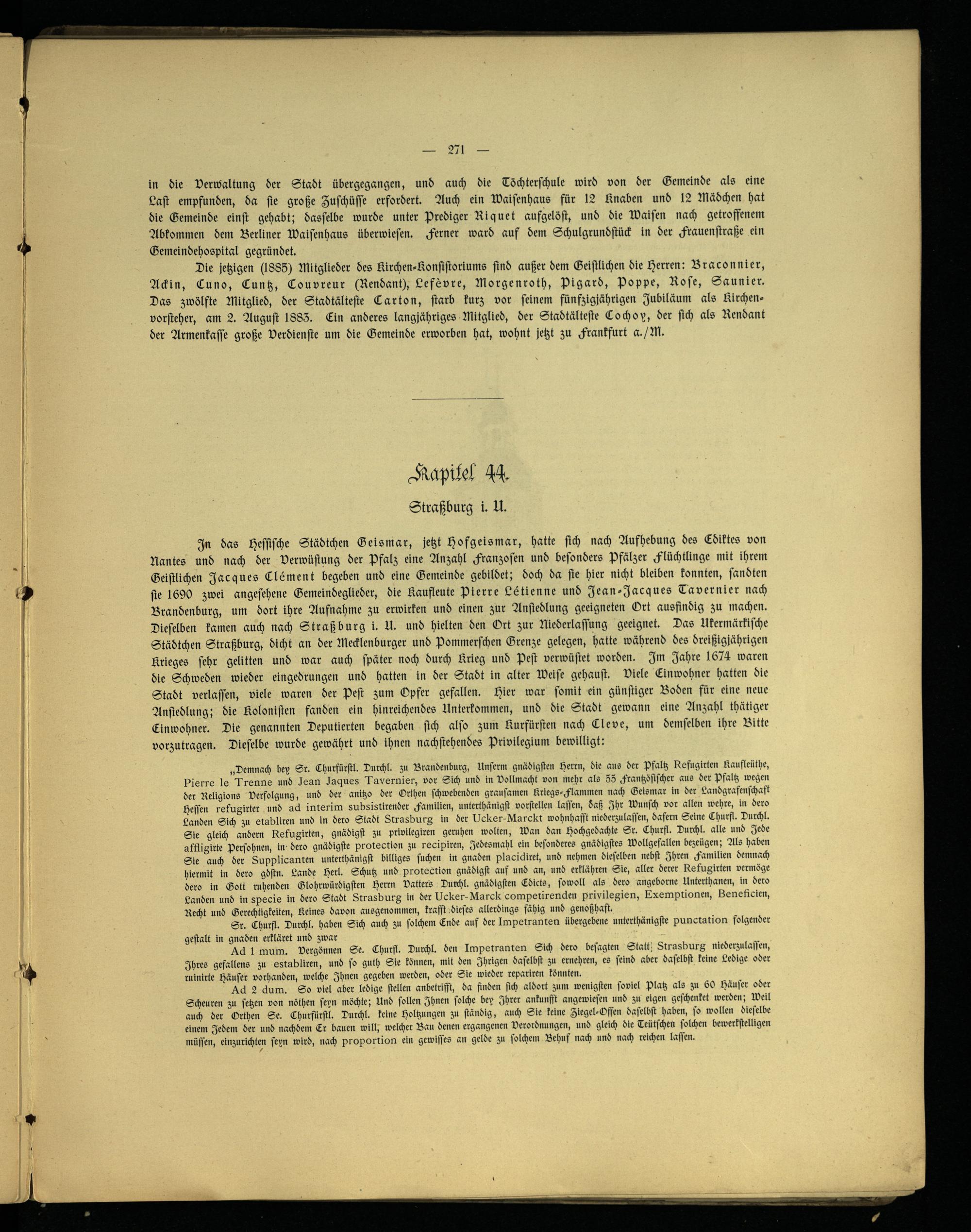 Geschichte der französischen Kolonie in Brandenburg-Preußen, unter besonderer Berücksichtigung der Berliner Gemeinde ; zur Veranlassung der zweihundertjährigen Jubelfeier am 29. Oktober 1885 / im Auftr. d. Konsistoriums d. Französischen Kirche zu Berlin u. unter Mitw. d. hierzu berufenen Komitees auf Grund amtlicher Quellen bearb. von Ed. Muret