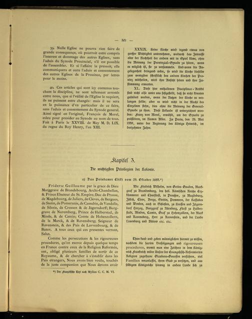 Geschichte der französischen Kolonie in Brandenburg-Preußen, unter besonderer Berücksichtigung der Berliner Gemeinde ; zur Veranlassung der zweihundertjährigen Jubelfeier am 29. Oktober 1885 / im Auftr. d. Konsistoriums d. Französischen Kirche zu Berlin u. unter Mitw. d. hierzu berufenen Komitees auf Grund amtlicher Quellen bearb. von Ed. Muret