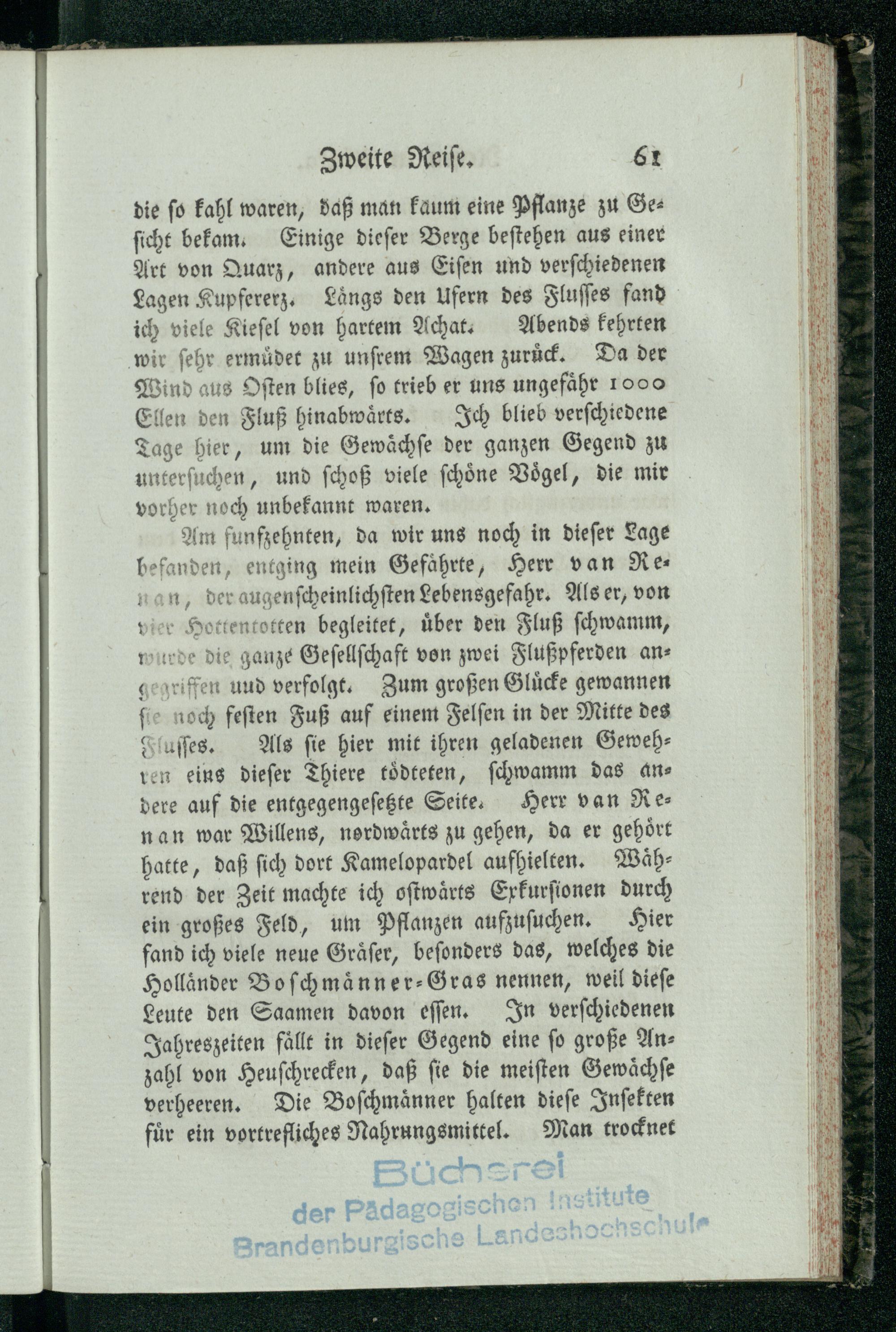 Wilhelm Patterson's Reisen in das Land der Hottentotten und der Kaffern, während der Jahre 1777, 1778 und 1779 : Mit vielen Kupfern und einer Landkarte / Aus dem Englischen übersetzt und mit Anmerkungen begleitet von Johann Reinhold Forster, der Rechte, Arzeneiwissenschaft und Weltweisheit Doktor, Professor der Naturgeschichte und Mineralogie zu Halle, auswärtigem Mitgliede der Akademie der höhern und schönen Wissenschaften zu Berlin