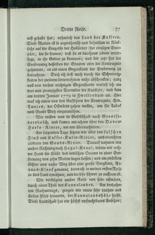 Wilhelm Patterson's Reisen in das Land der Hottentotten und der Kaffern, während der Jahre 1777, 1778 und 1779 : Mit vielen Kupfern und einer Landkarte / Aus dem Englischen übersetzt und mit Anmerkungen begleitet von Johann Reinhold Forster, der Rechte, Arzeneiwissenschaft und Weltweisheit Doktor, Professor der Naturgeschichte und Mineralogie zu Halle, auswärtigem Mitgliede der Akademie der höhern und schönen Wissenschaften zu Berlin
