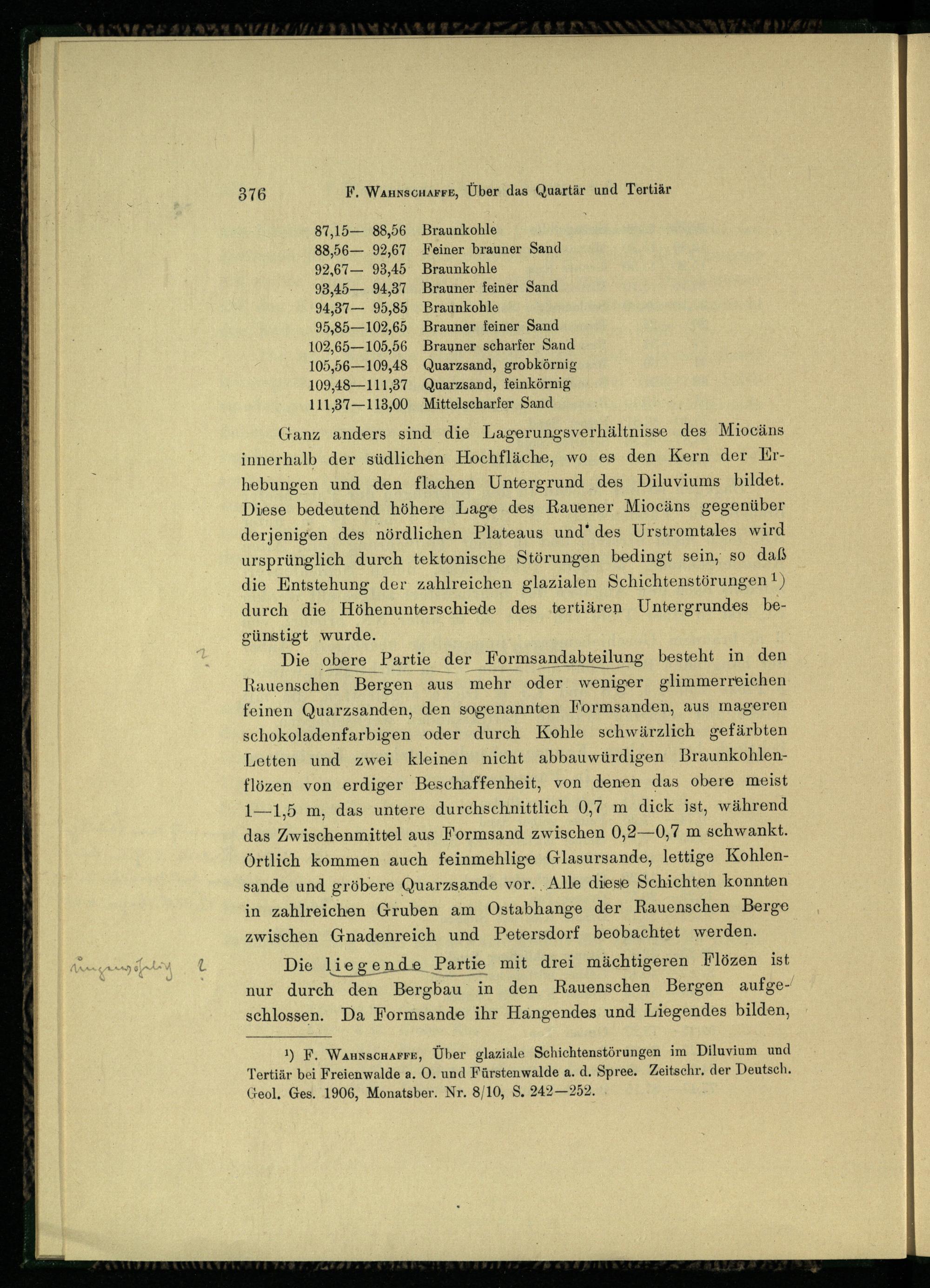 Über das Quartär und Tertiär bei Fürstenwalde a. d. Spree / von Felix Wahnschaffe