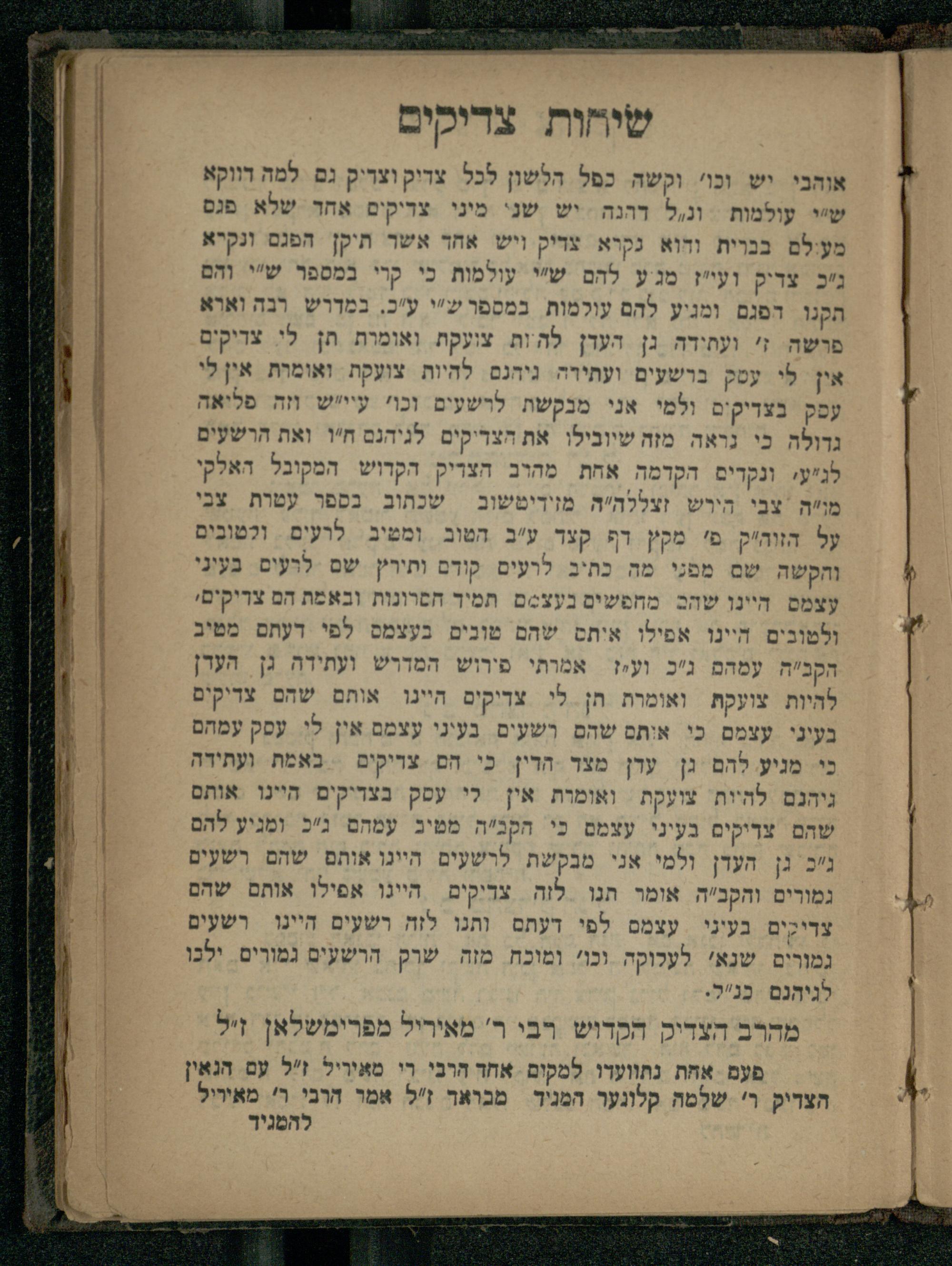 Maʿaśiyot ṿe-śiḥot tsadiḳim : sipurim u-maʿaśiyot mi-tsadiḳim geʾonim u-kedoshim ... gam hosafti la-zeh segulot u-refuʾot ... gam śiḥot ṿe-ḥidushe torah ... / mi-khevod avi ... Avraham Nisan ha-Leṿiמעשיות ושיחות צדיקים : ספורים ומעשיות מצדיקים גאונים וקדושים ... גם הוספתי לזה סגולות ורפואות גם שיחות וחדושי תורה ... / מכבוד אבי ... אברהם ניסן הלוי