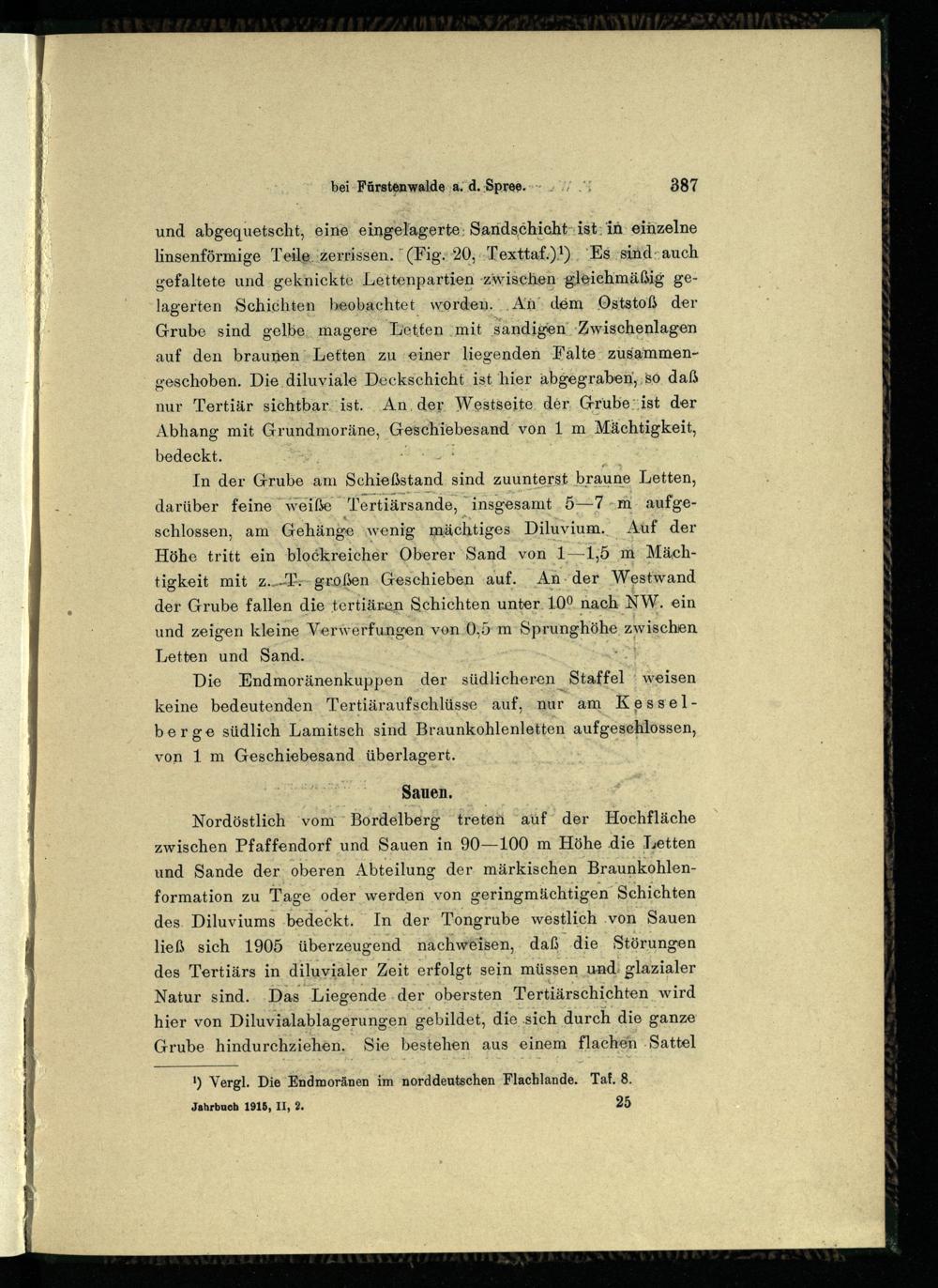 Über das Quartär und Tertiär bei Fürstenwalde a. d. Spree / von Felix Wahnschaffe