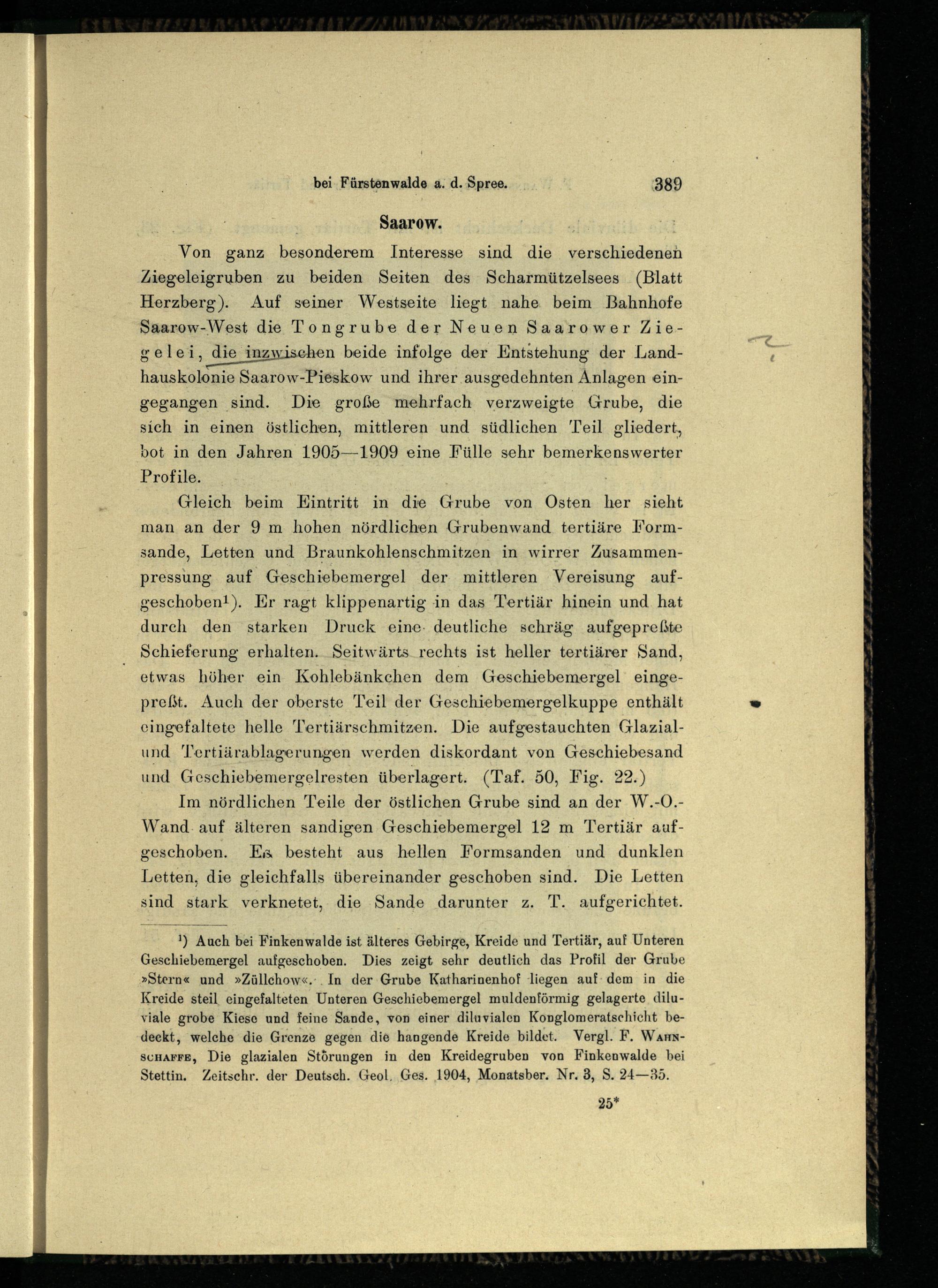Über das Quartär und Tertiär bei Fürstenwalde a. d. Spree / von Felix Wahnschaffe