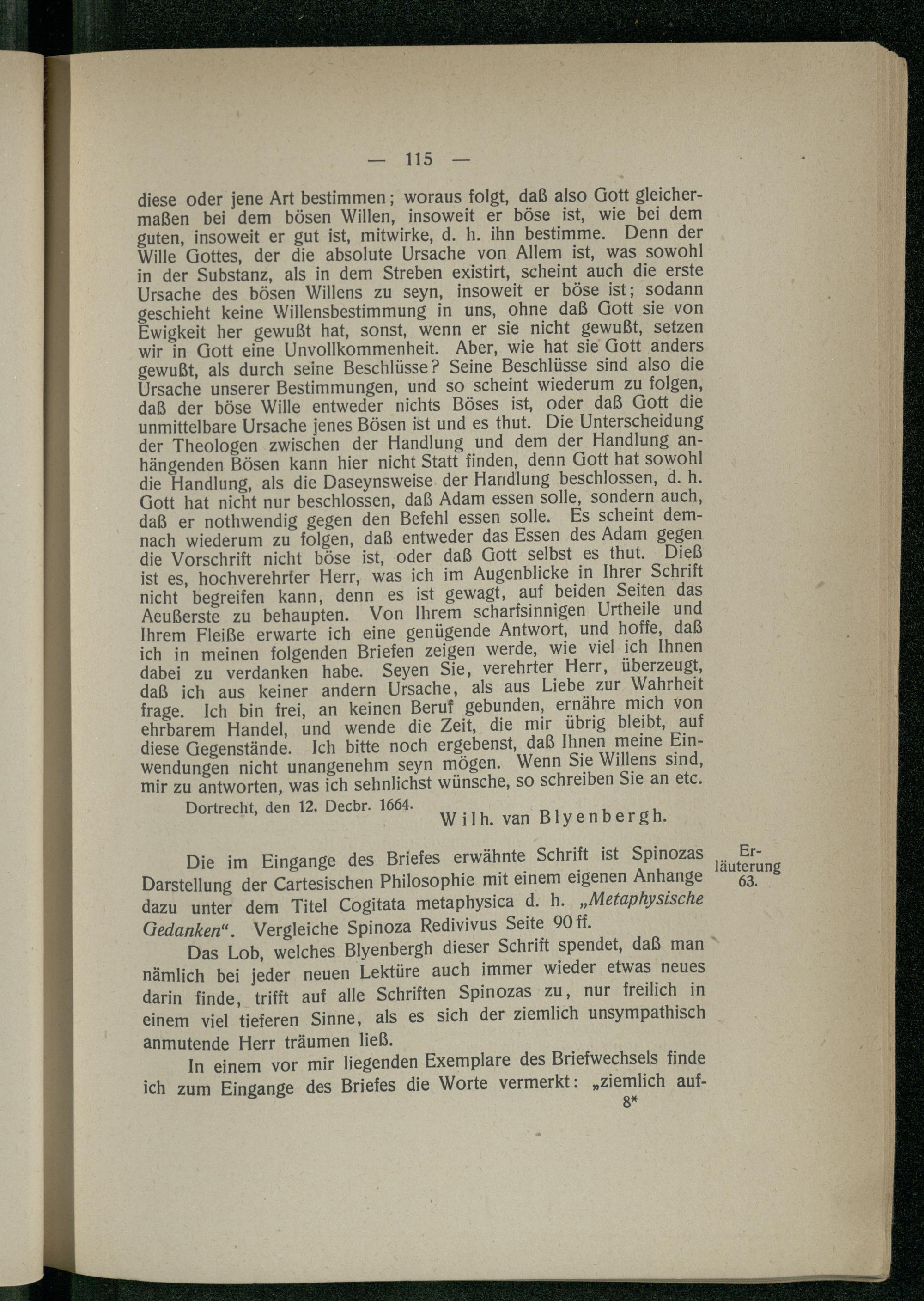 1. Brief. Wilhelm van Blyenbergh an Spinoza.