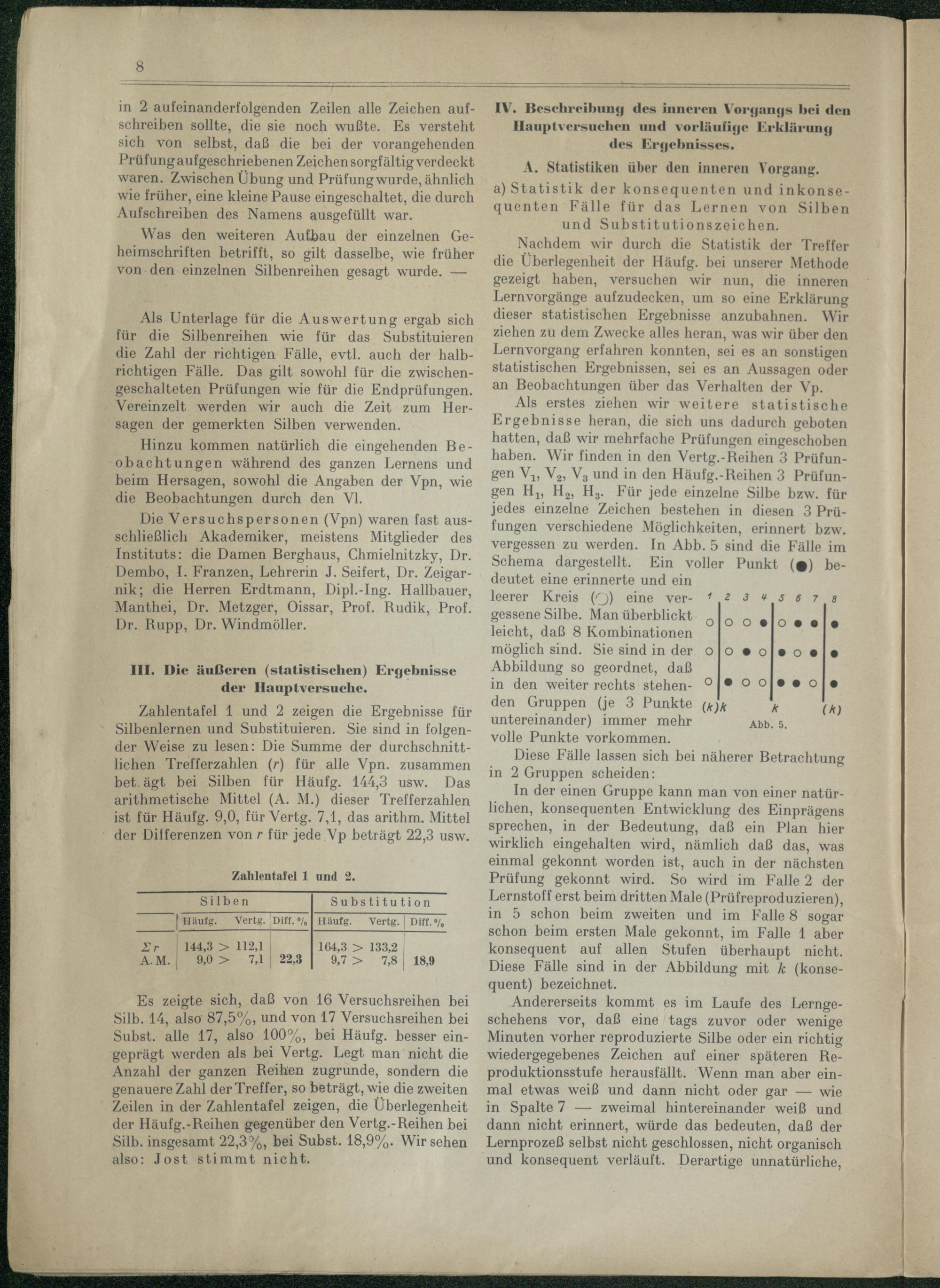 IV. Beschreibung des inneren Vorgangs bei den Hauptversuchen und vorläufige Erklärung des Ergebnisses.