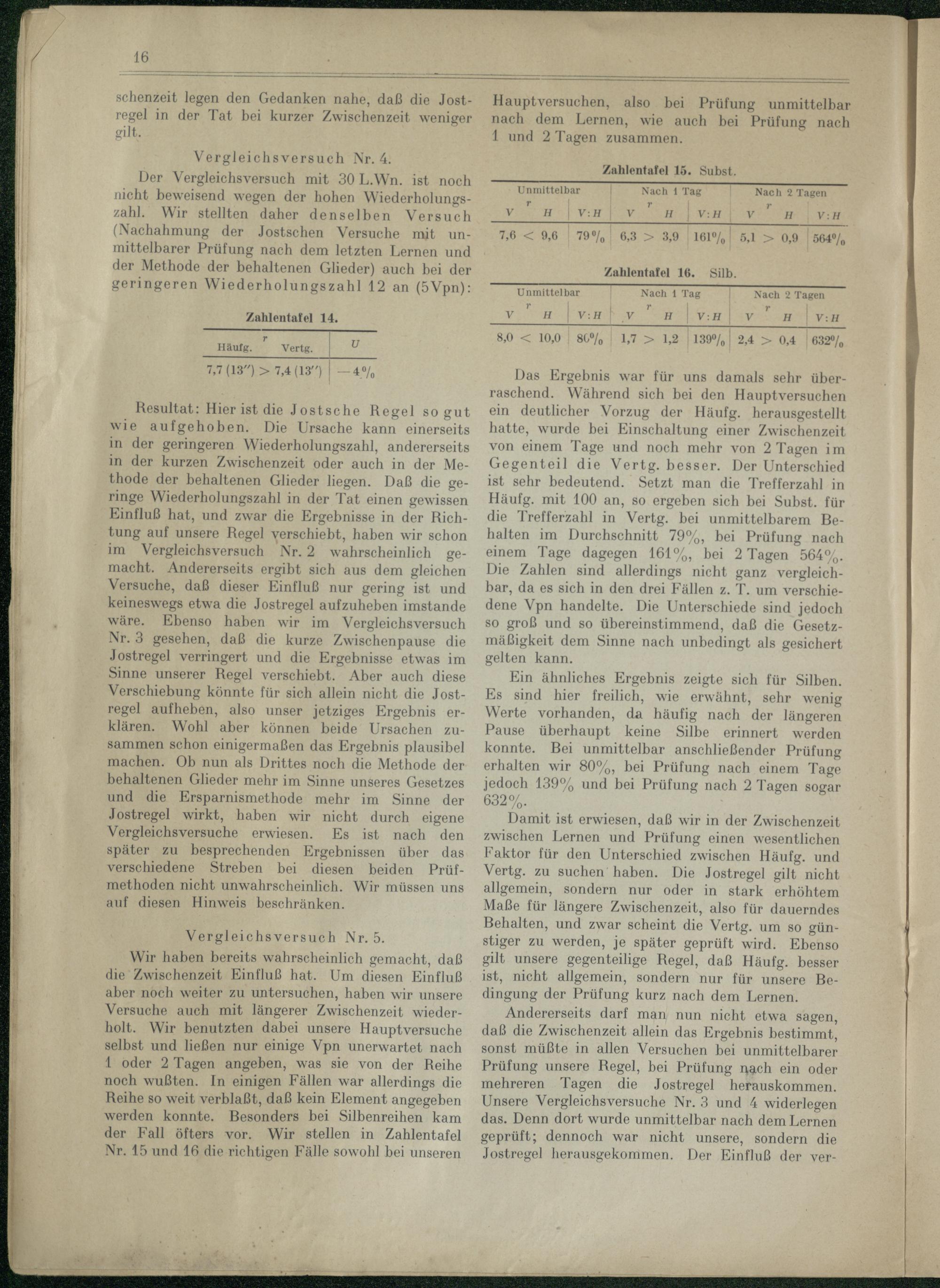 VII. Gegenüberstellung unserer und der Jostschen Versuche und verschiedener Varianten beider Versuche mit Erklärung der Unterschiede.