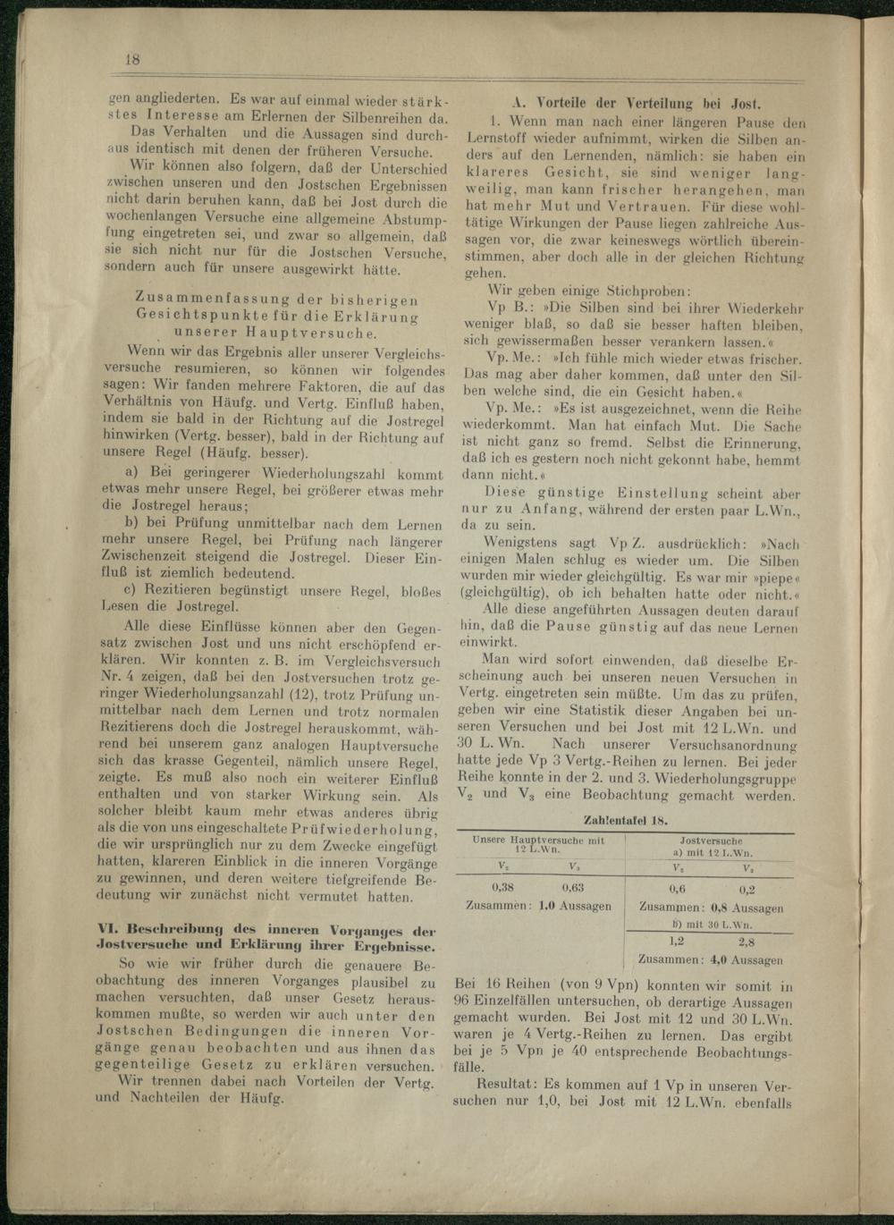 VI. Beschreibung des inneren Vorganges der Jostversuche und Erklärung ihrer Erge...