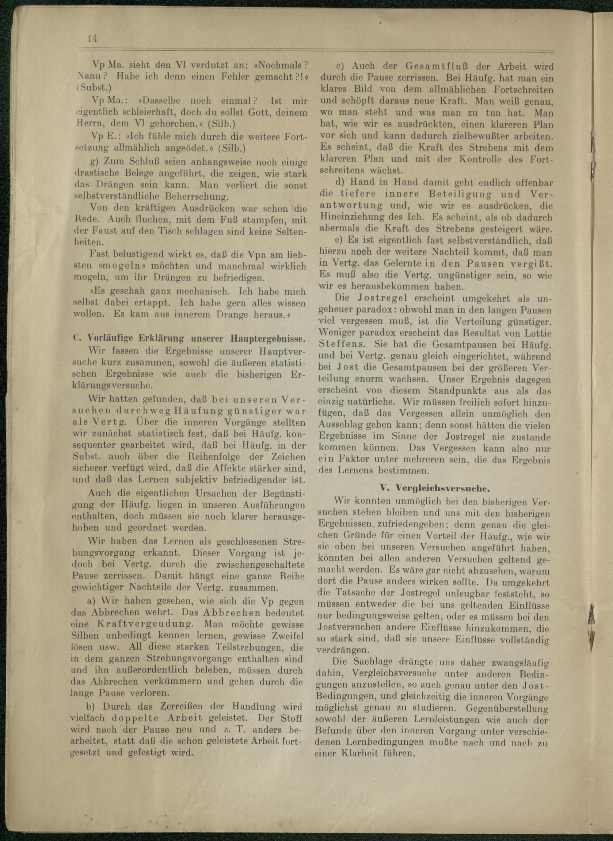 VI. Beschreibung des inneren Vorganges der Jostversuche und Erklärung ihrer Ergebnisse.
