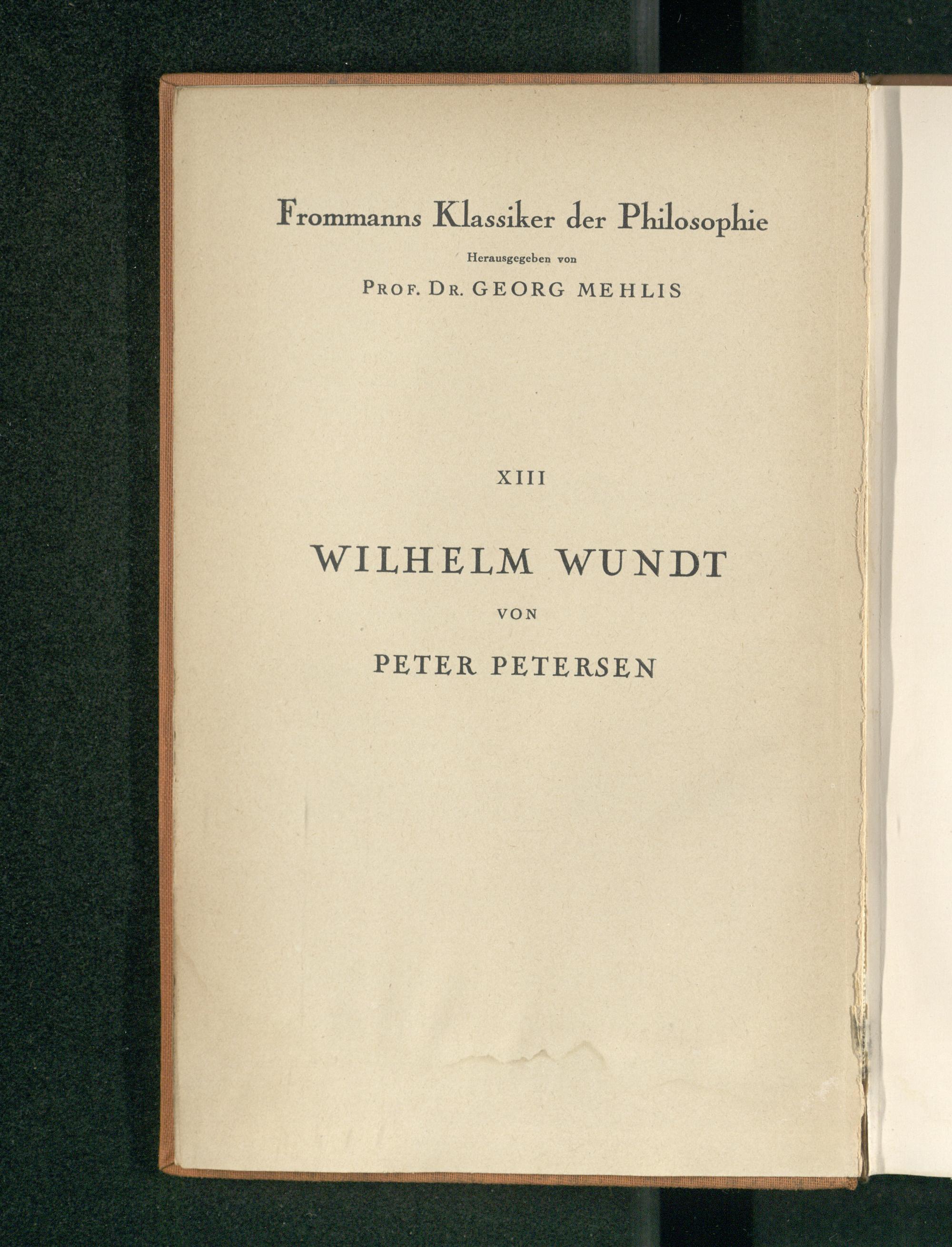 Reihenangabe "Frommanns Klassiker der Philosophie" XIII Wilhelm Wundt von Peter ...