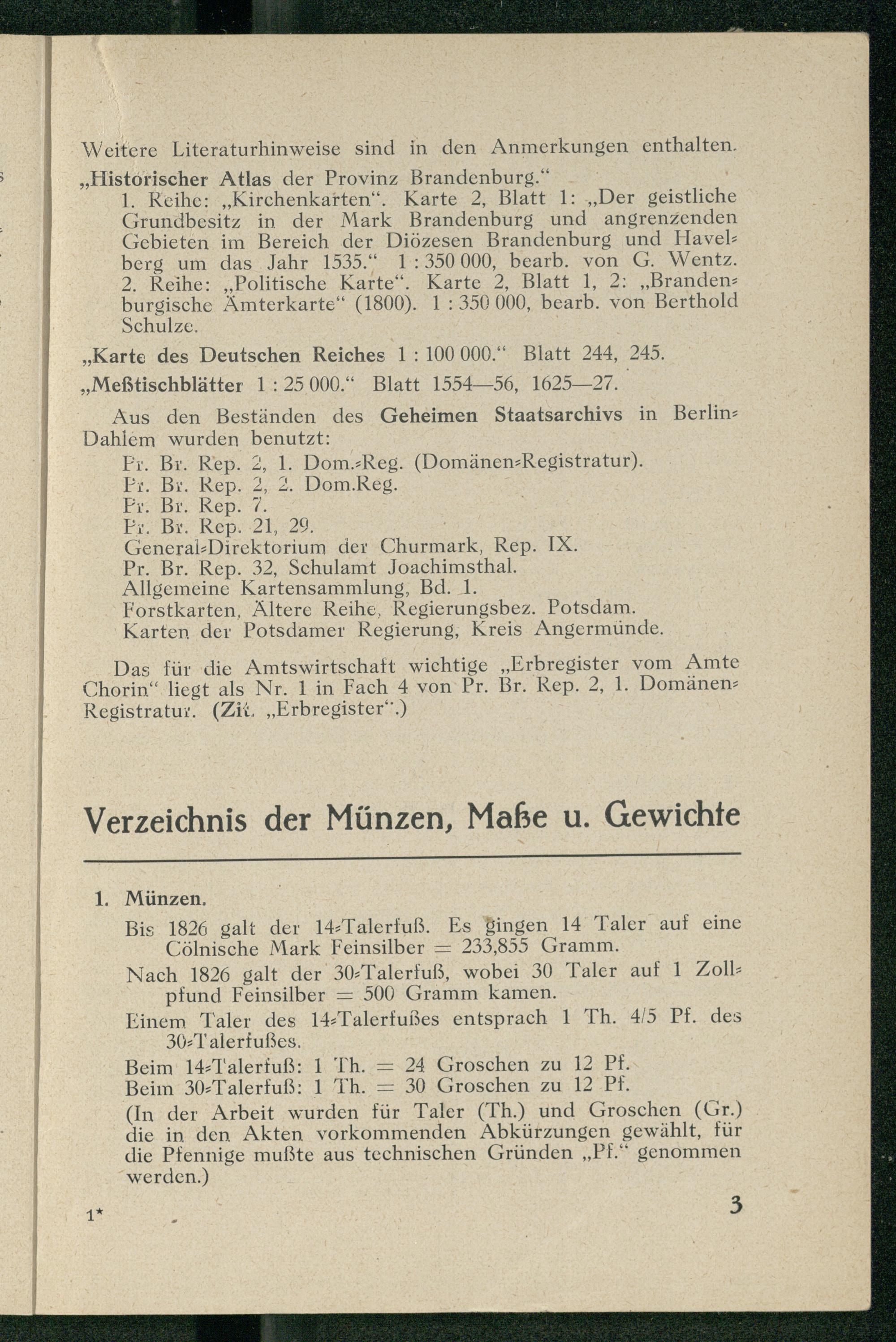 Verzeichnis der Münzen, Maße u. Gewichte