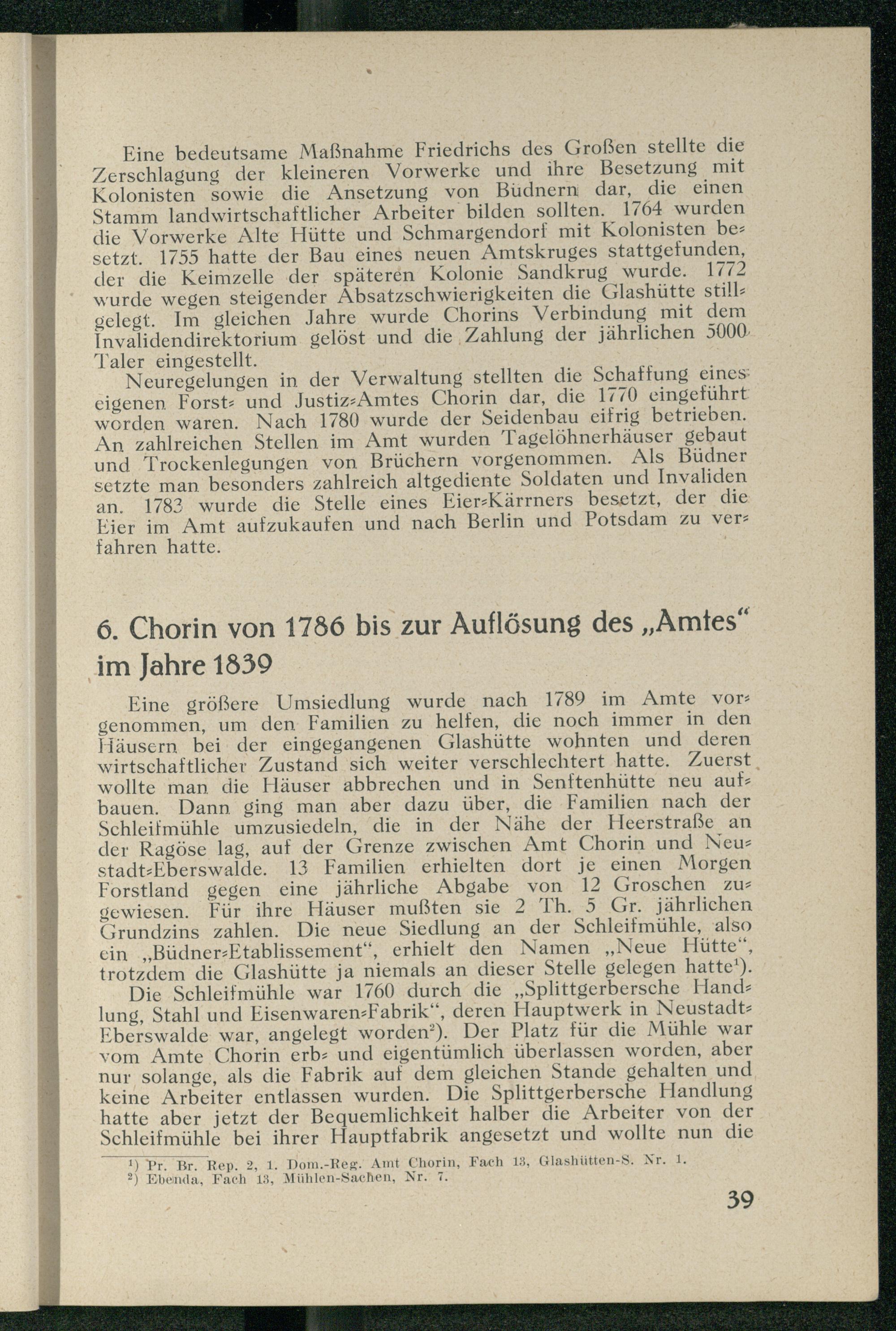 6. Chorin von 1786 bis zur Auflösung des "Amtes" im Jahre 1839