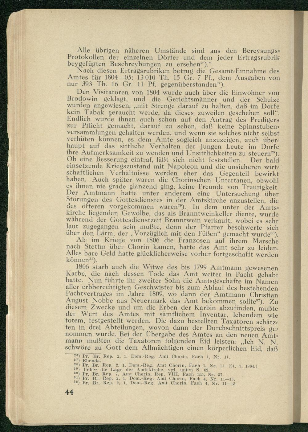 6. Chorin von 1786 bis zur Auflösung des "Amtes" im Jahre 1839