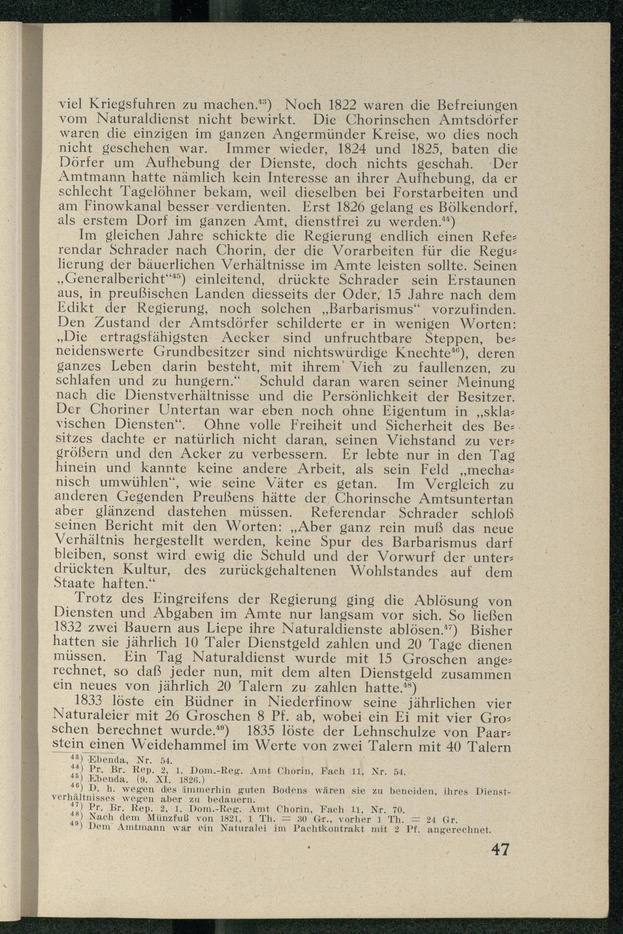 6. Chorin von 1786 bis zur Auflösung des "Amtes" im Jahre 1839