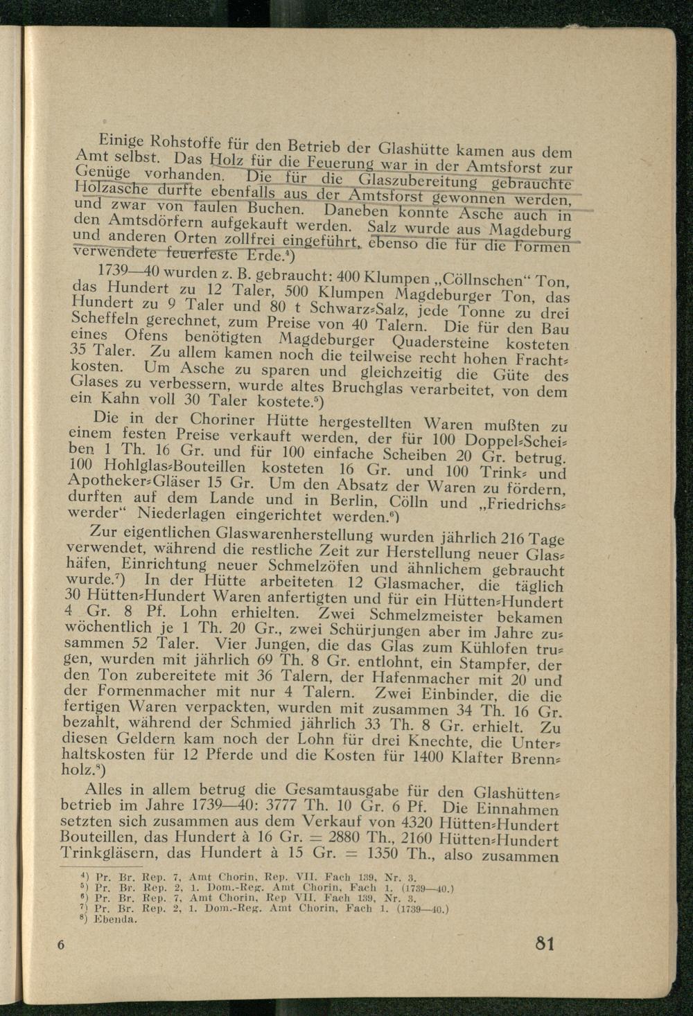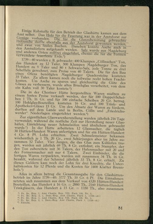 III. Die Chorinsche Glashütte.