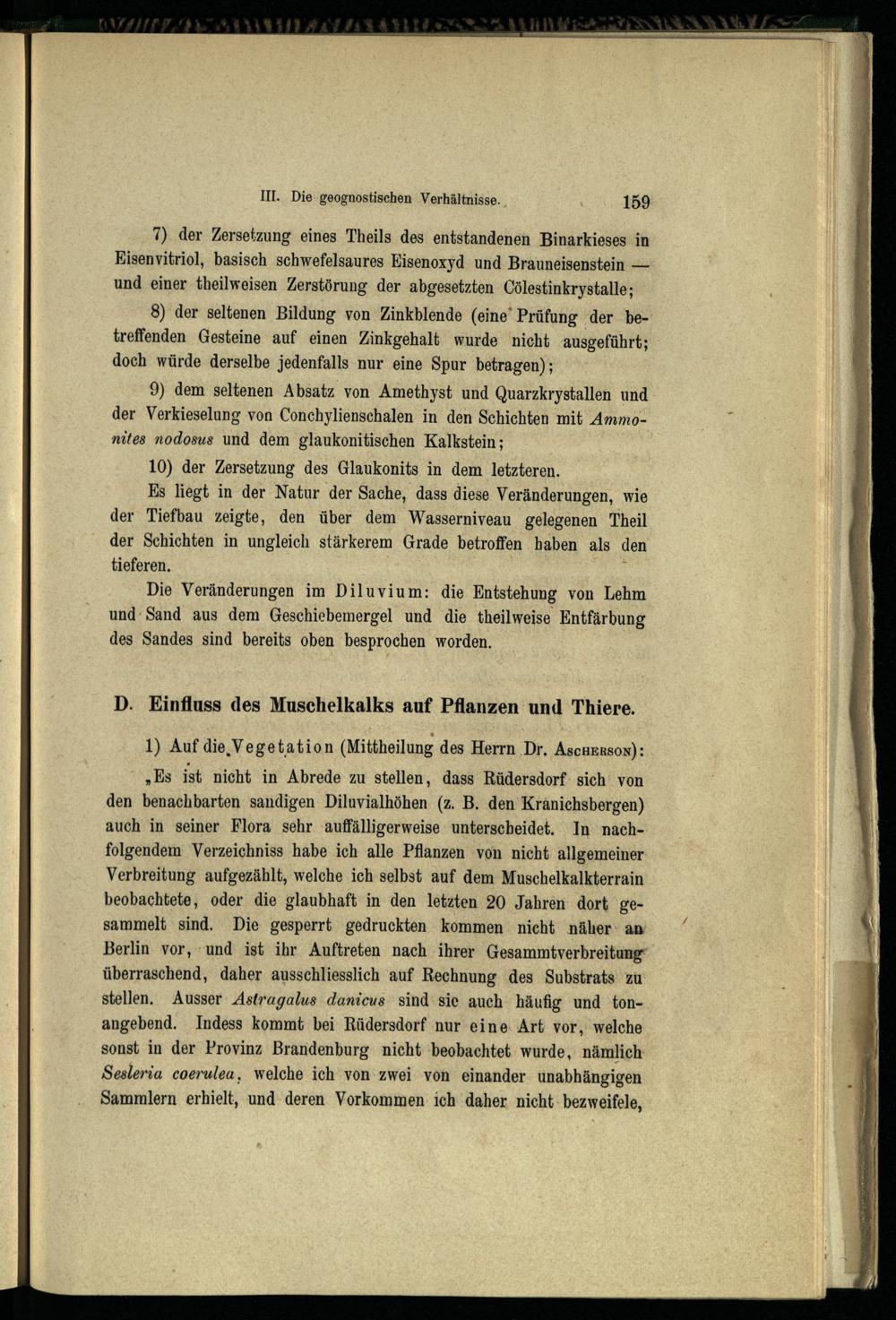 D. Einfluss des Muschelkalks auf Pflanzen und Thiere.
