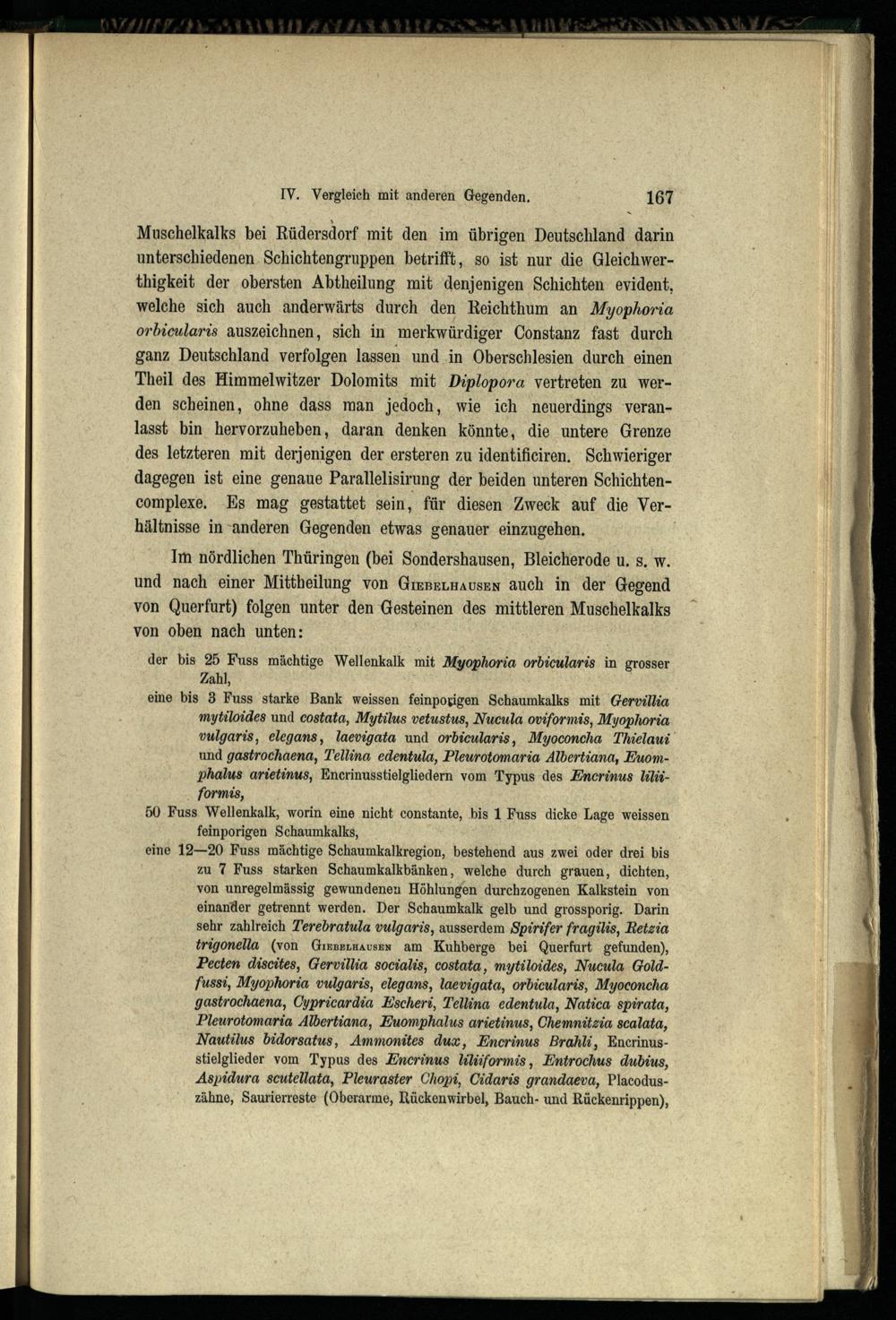 IV. Vergleichung der Rüdersdorfer Triasformation mit derjenigen anderer Gegenden Deutschlands.