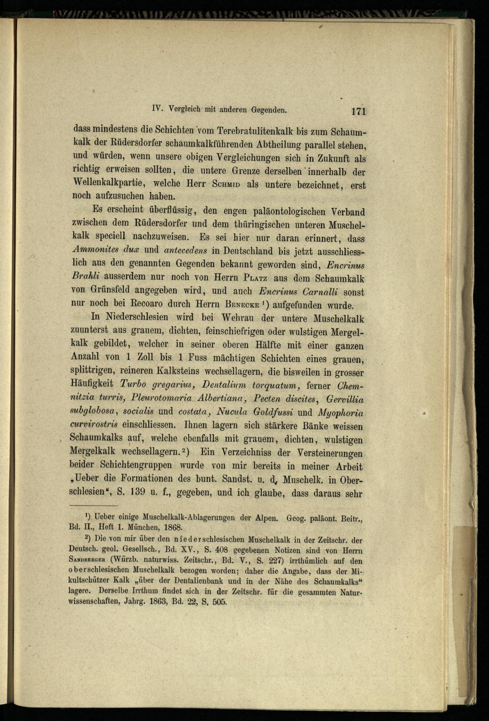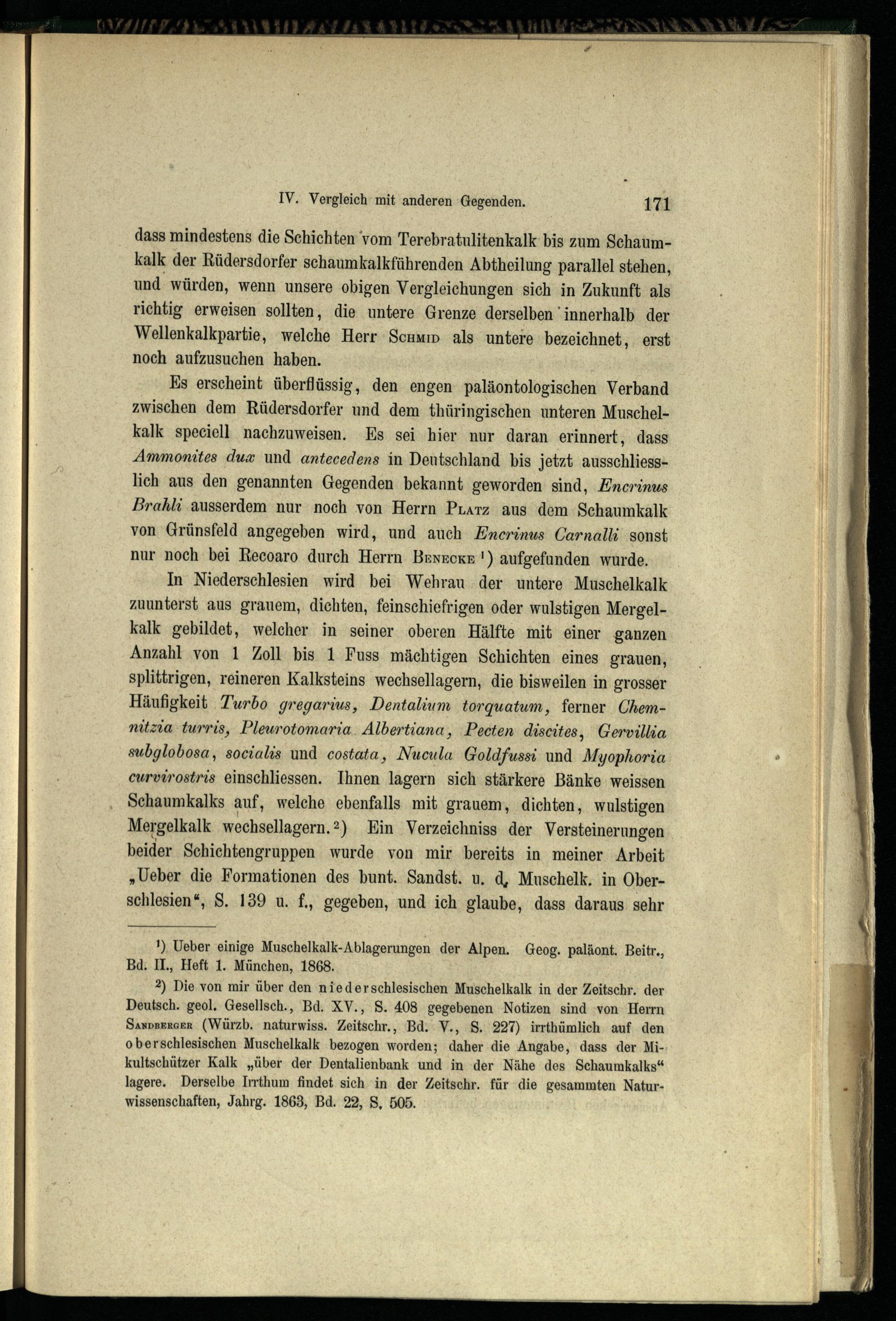 IV. Vergleichung der Rüdersdorfer Triasformation mit derjenigen anderer Gegenden...