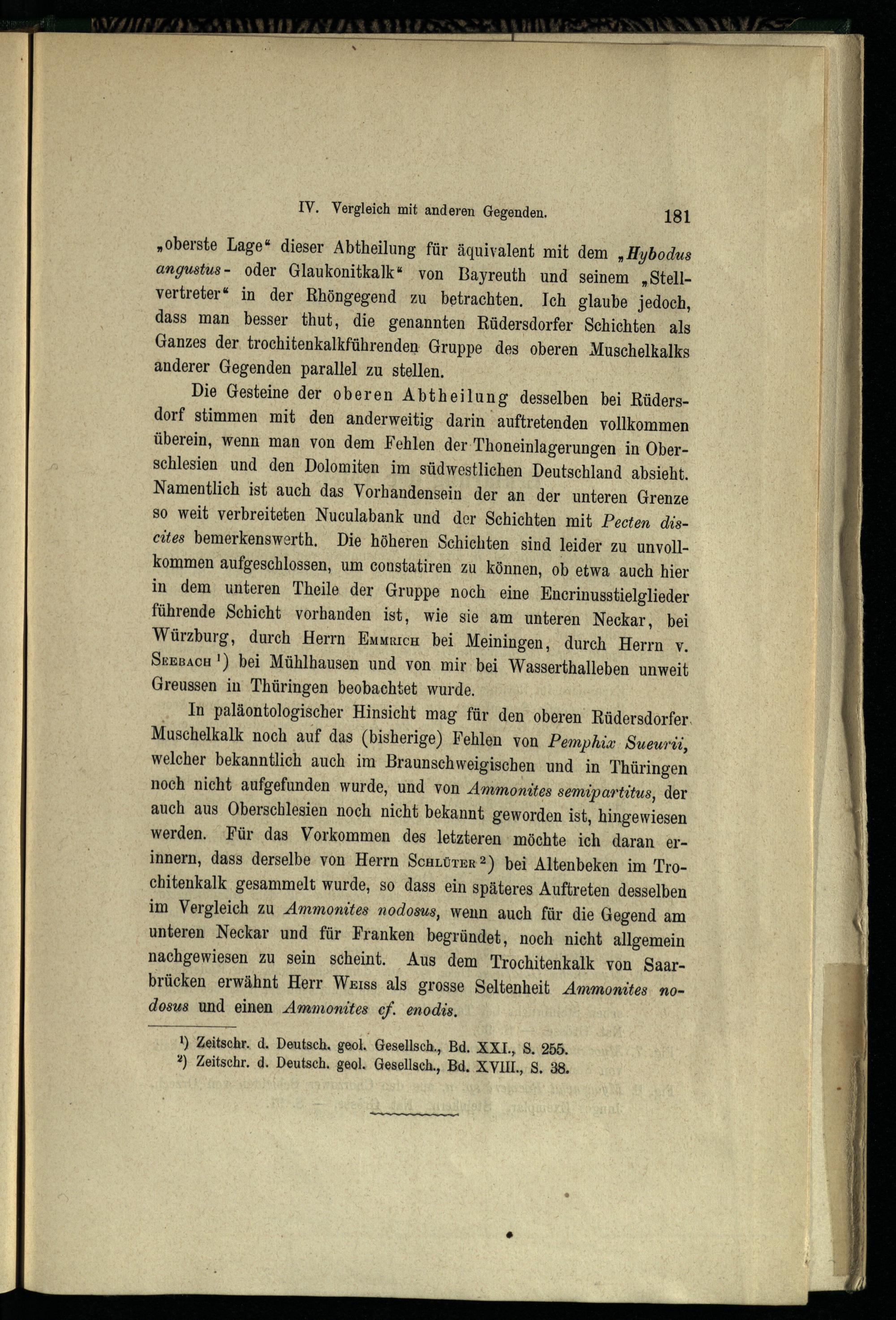 IV. Vergleichung der Rüdersdorfer Triasformation mit derjenigen anderer Gegenden...