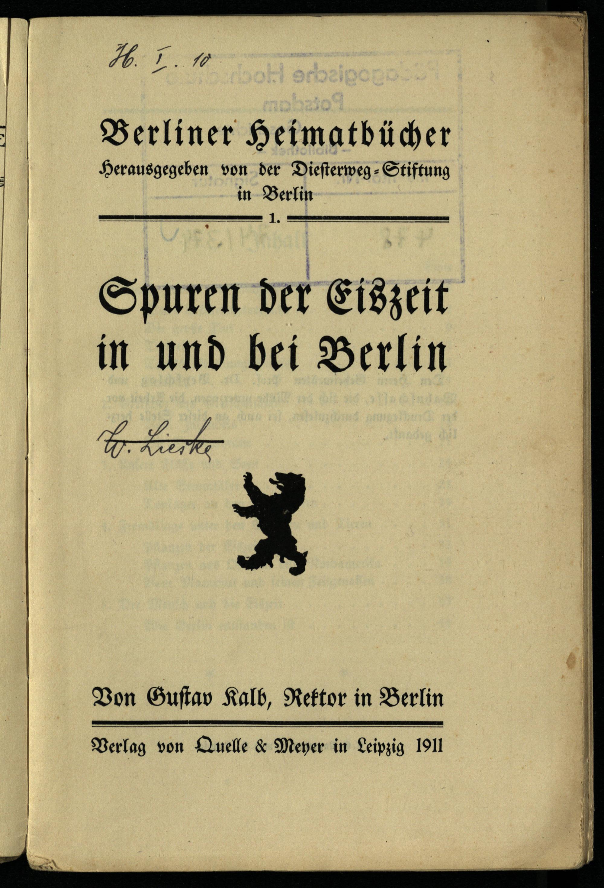 Spuren der Eiszeit in und bei Berlin / von Gustav Kalb, Rektor in Berlin