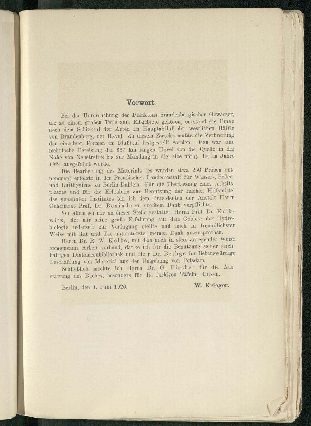 Zur Biologie des Flußplanktons : Untersuchungen über das Potamoplankton des Havelgebietes / von Walther Krieger