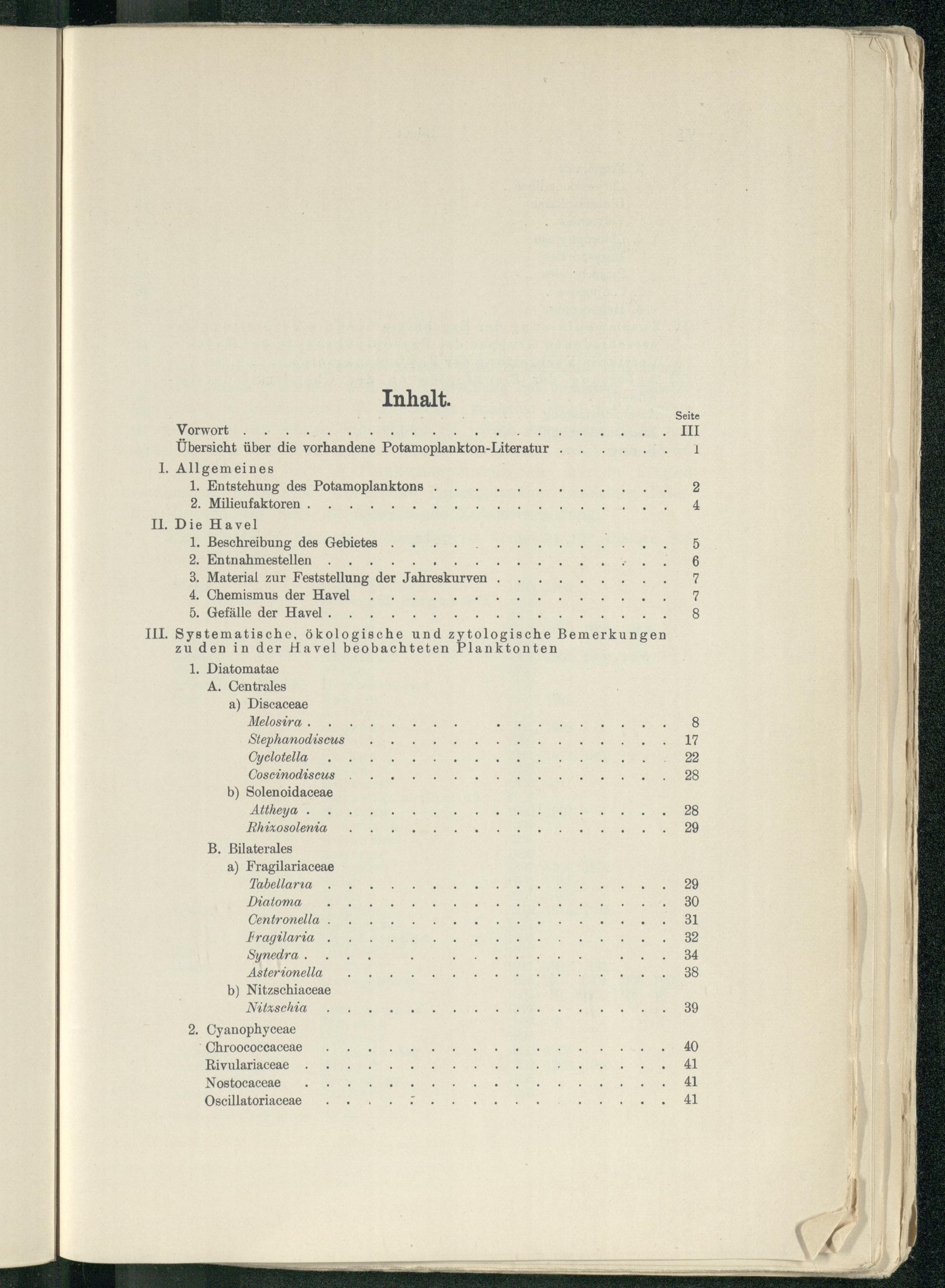 III. Systematische, ökologische und zytologische Bemerkungen zu den in der Havel beobachteten Planktonen.