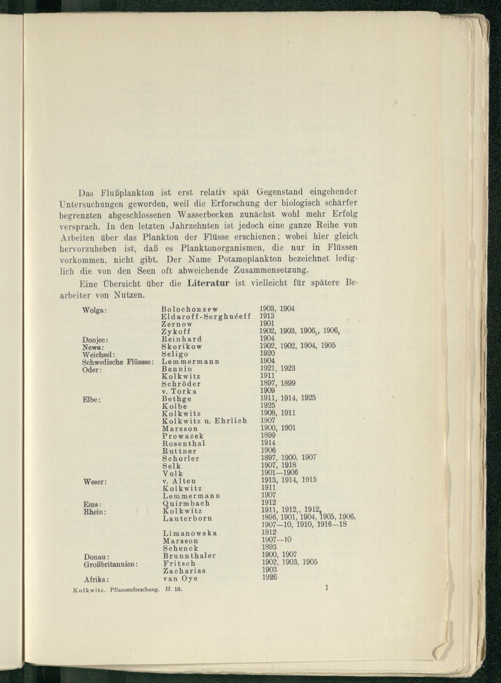 Zur Biologie des Flußplanktons : Untersuchungen über das Potamoplankton des Havelgebietes / von Walther Krieger