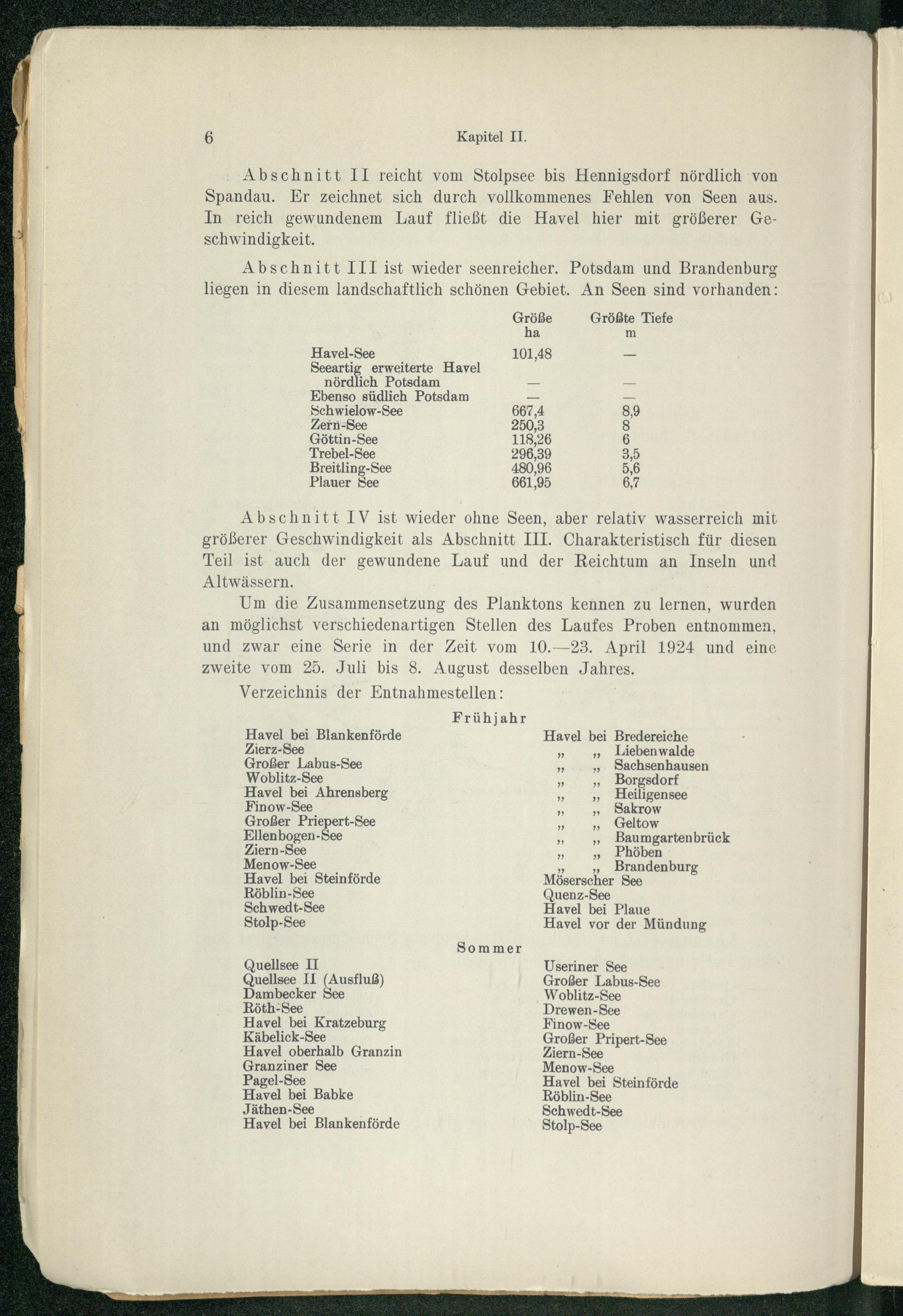 IV. Zusammenfassung der Ergebnisse über die Verbreitung der verschiedenen Gruppen des Phytoplanktons in der Havel.