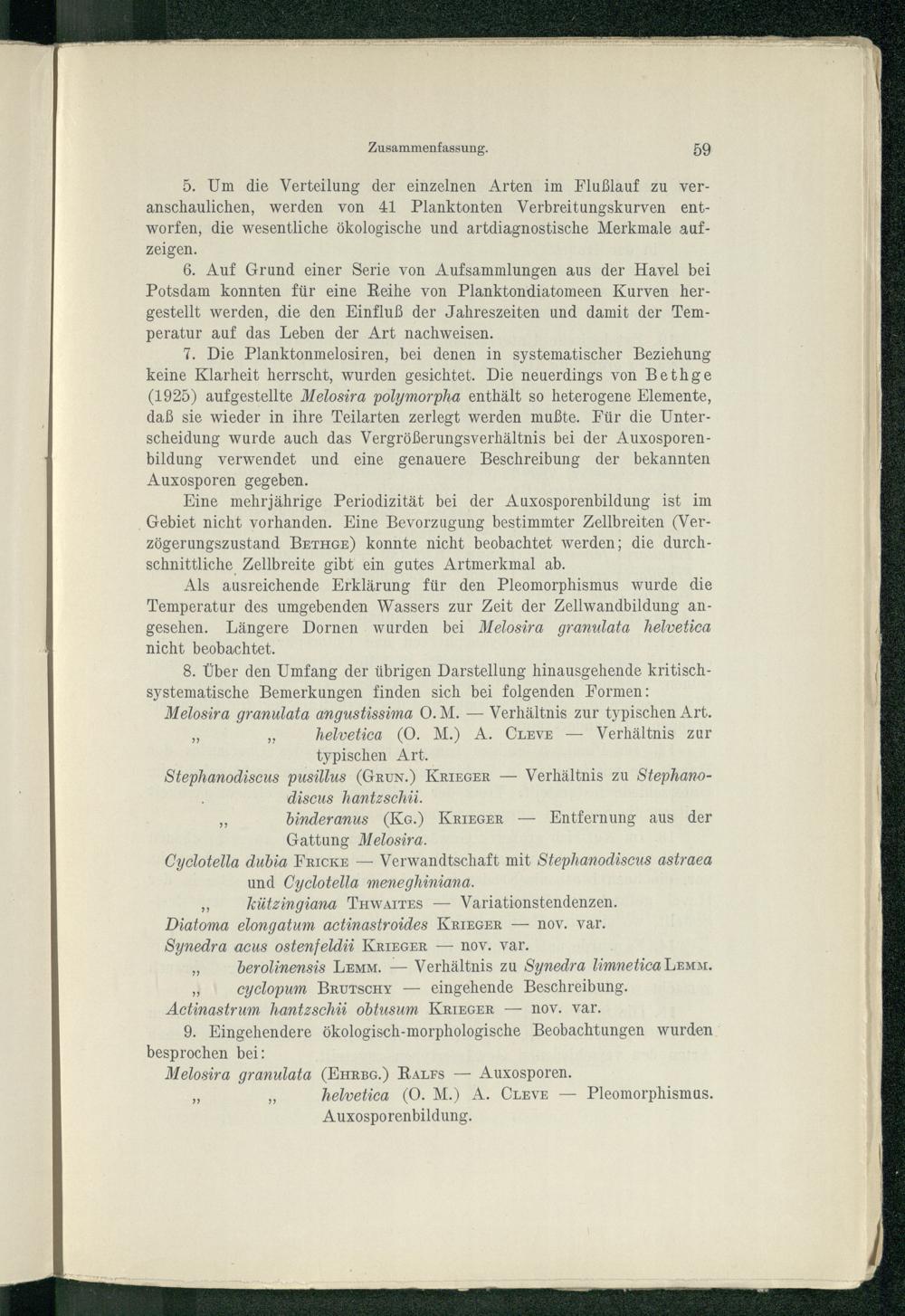 Zur Biologie des Flußplanktons : Untersuchungen über das Potamoplankton des Havelgebietes / von Walther Krieger