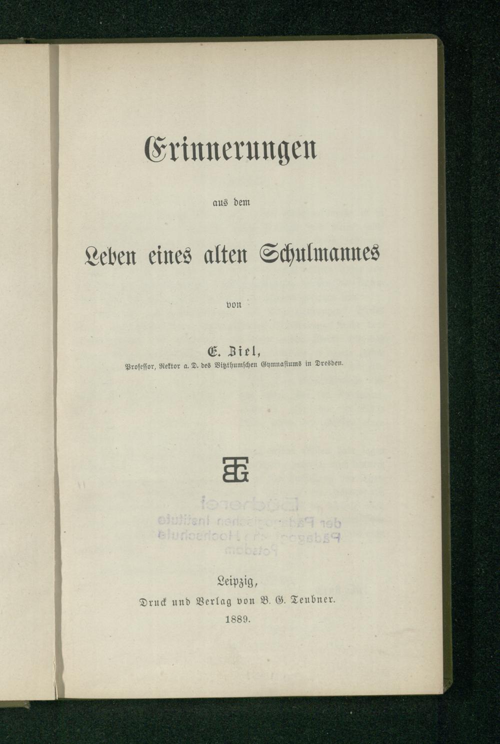 Erinnerungen aus dem Leben eines alten Schulmannes / von E. Ziel