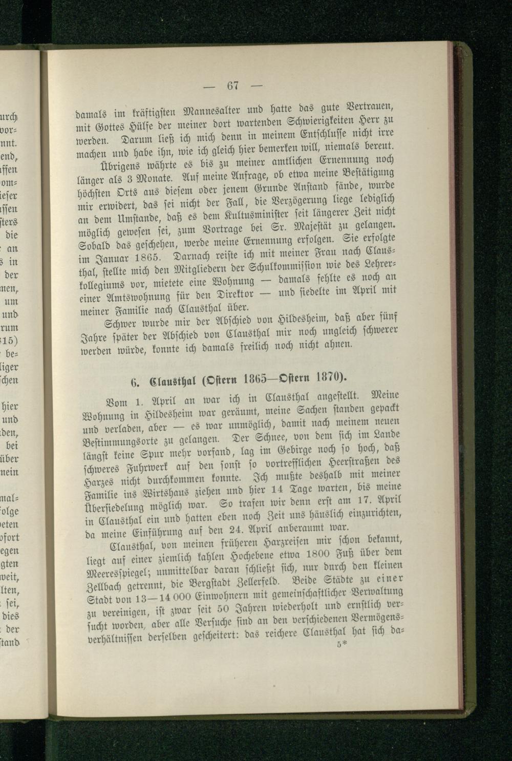 6. Clausthal (Ostern 1865 - Ostern 1870).