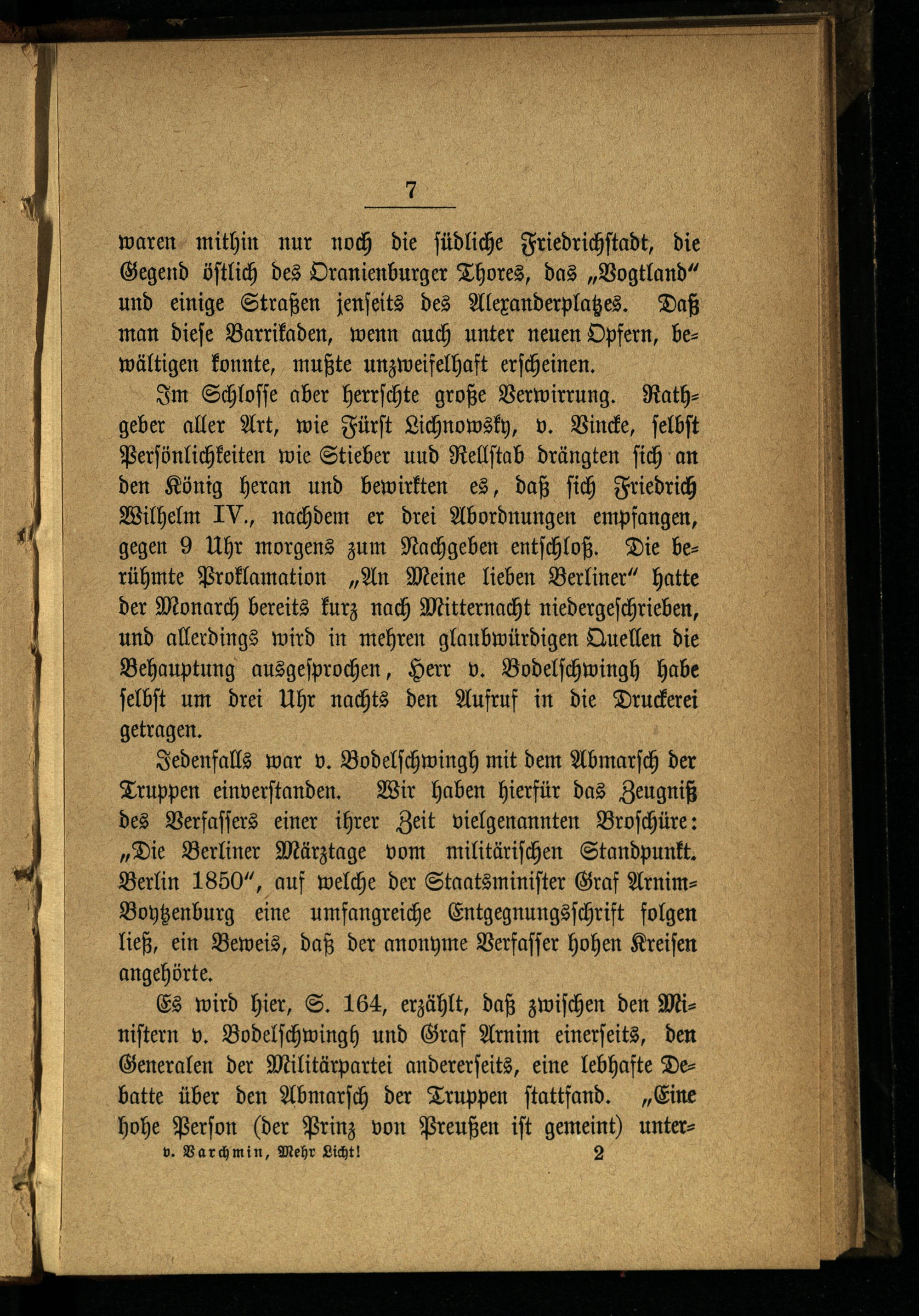 Mehr Licht! : Beiträge zur Geschichte des Berliner Straßenkampfes am 18. März 1848 / von Friedrich Wilhelm von Varchmin