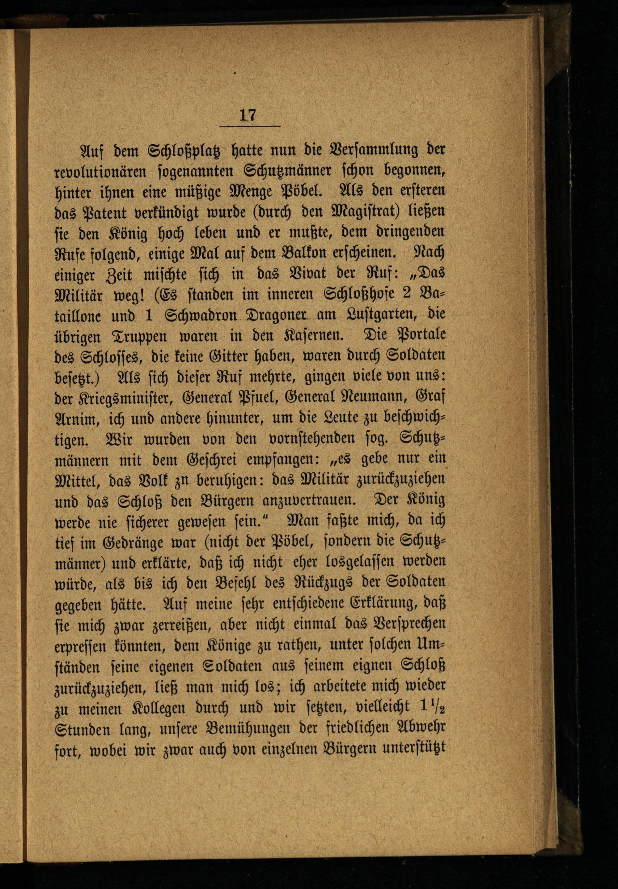 III. Welche Ursachen haben die Zurückziehung des Militärs von den Straßen und Plätzen, dem königlichen Schloß und der Schloßwache veranlaßt?