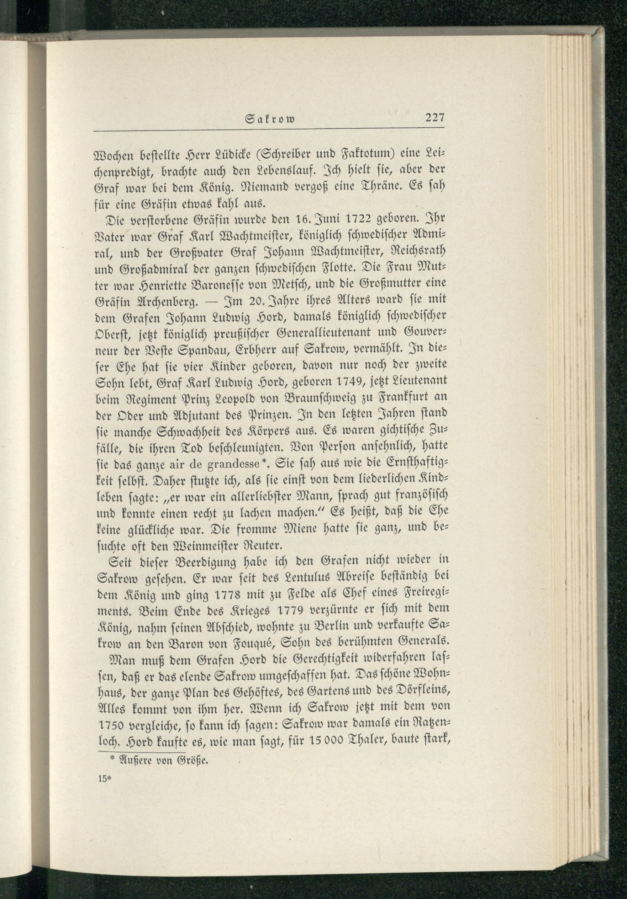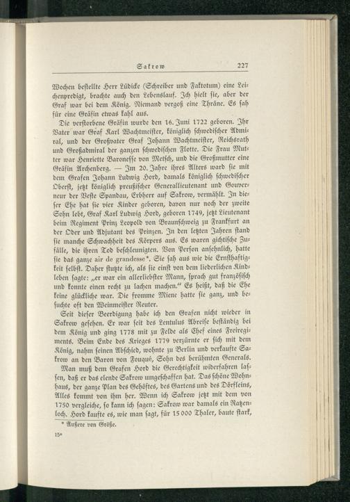 Sakrow unter dem Grafen Hord von 1774 bis 1779