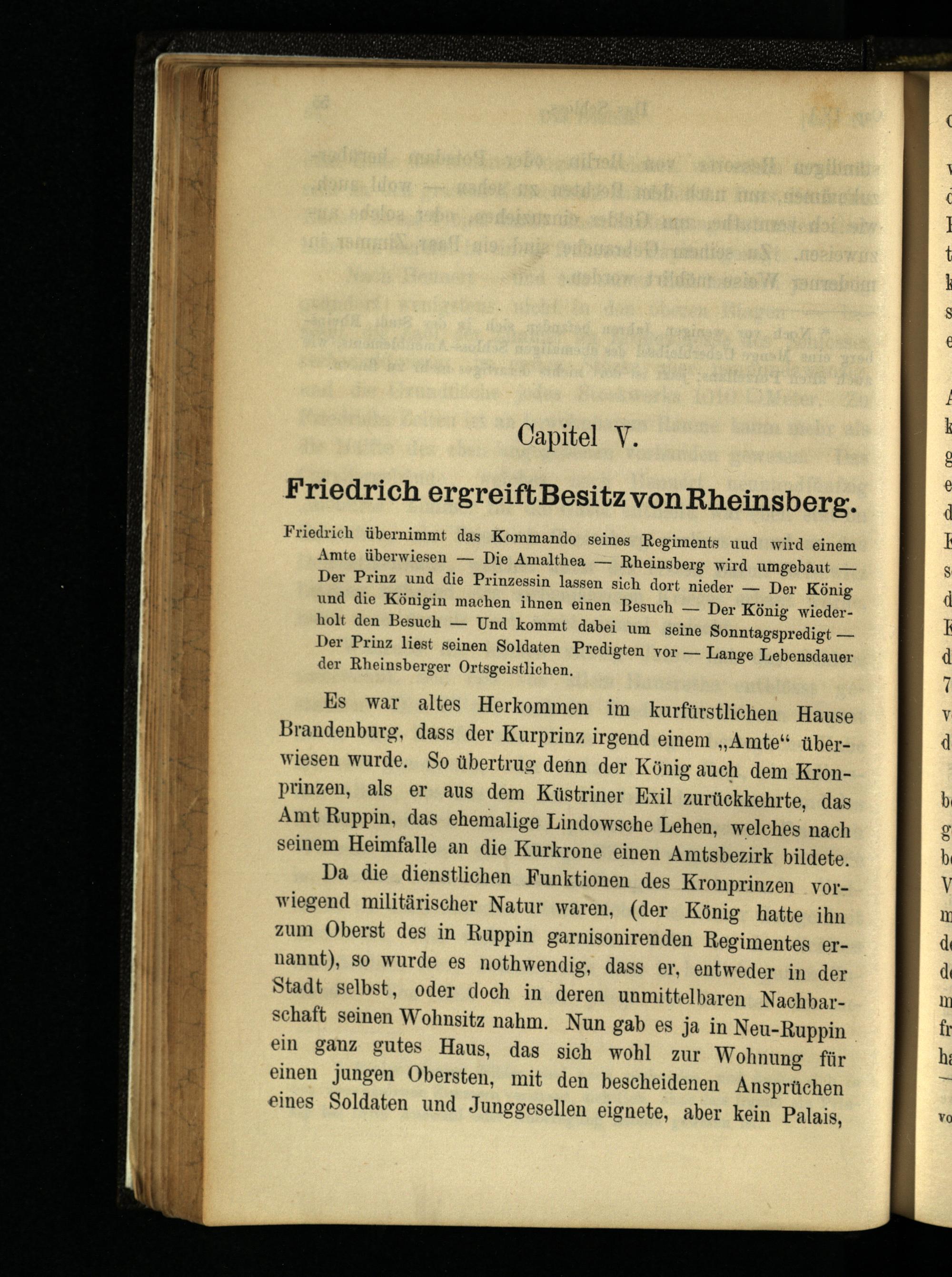 Capitel V. Friedrich ergreift Besitz von Rheinsberg.