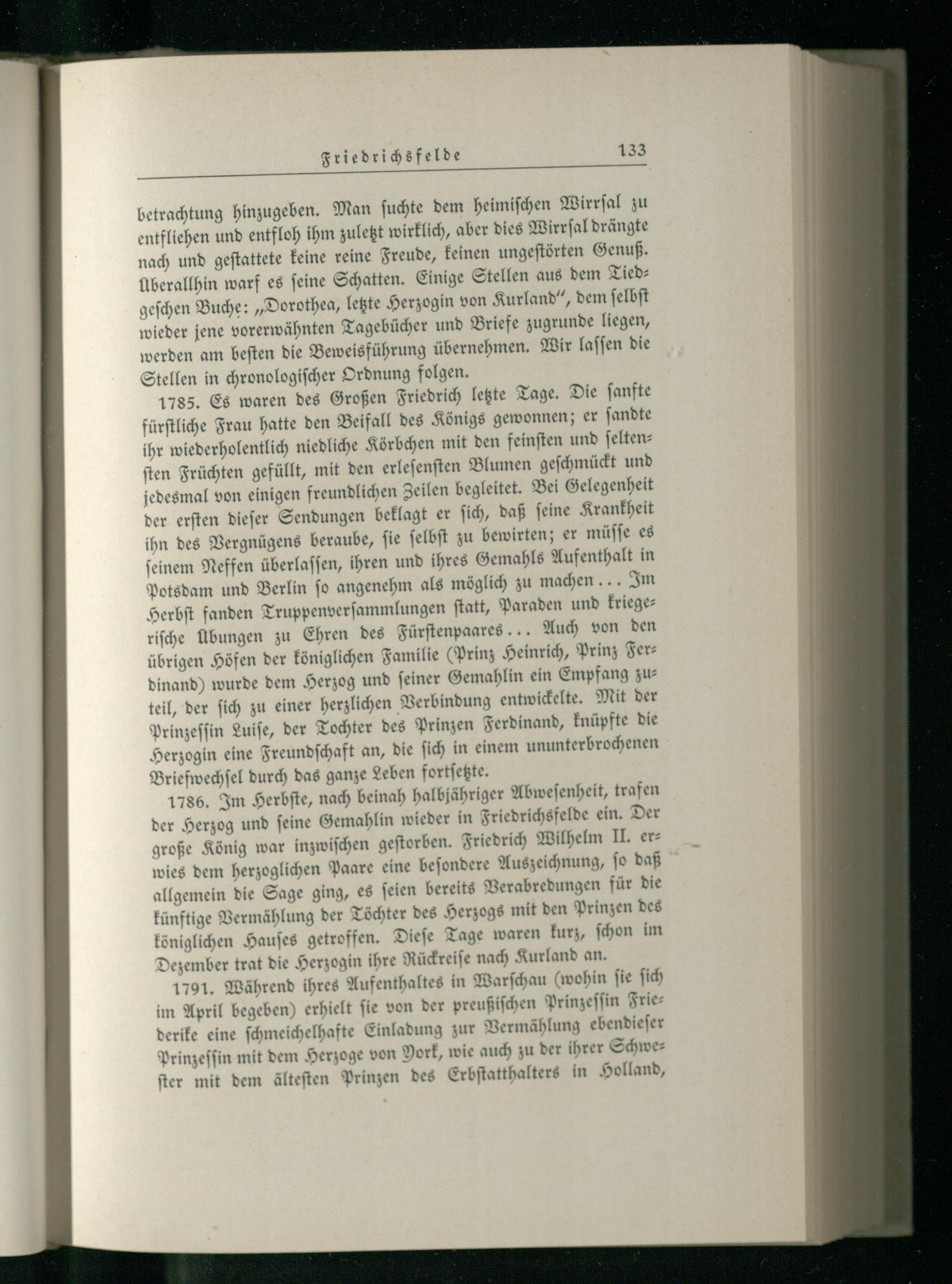 Friedrichsfelde von 1785 bis 1799 (Herzogin Dorothea von Kurland)