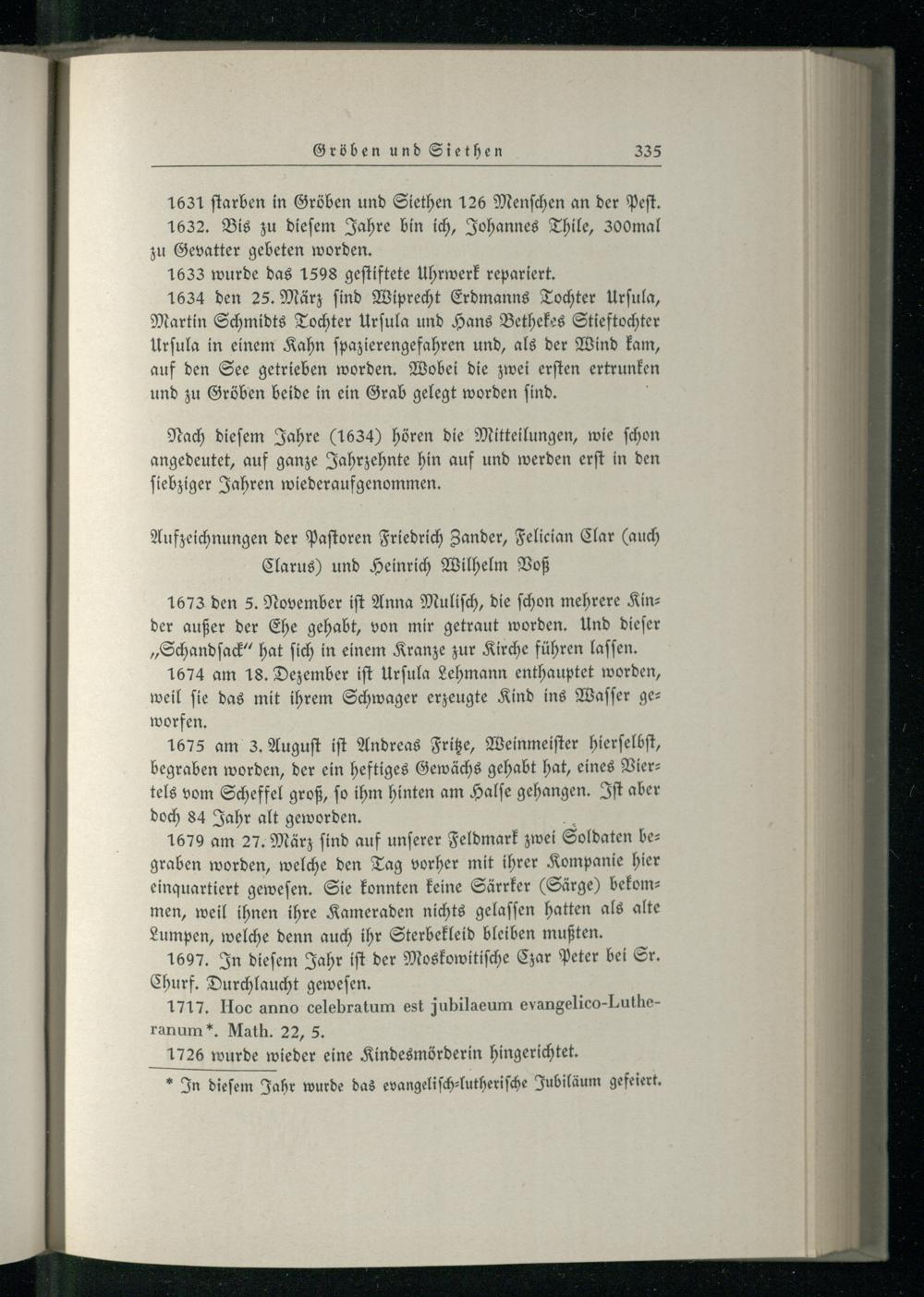 Aufzeichnungen der Pastoren Friedrich Zander, Felician Clar (auch Clarus) und Heinrich...