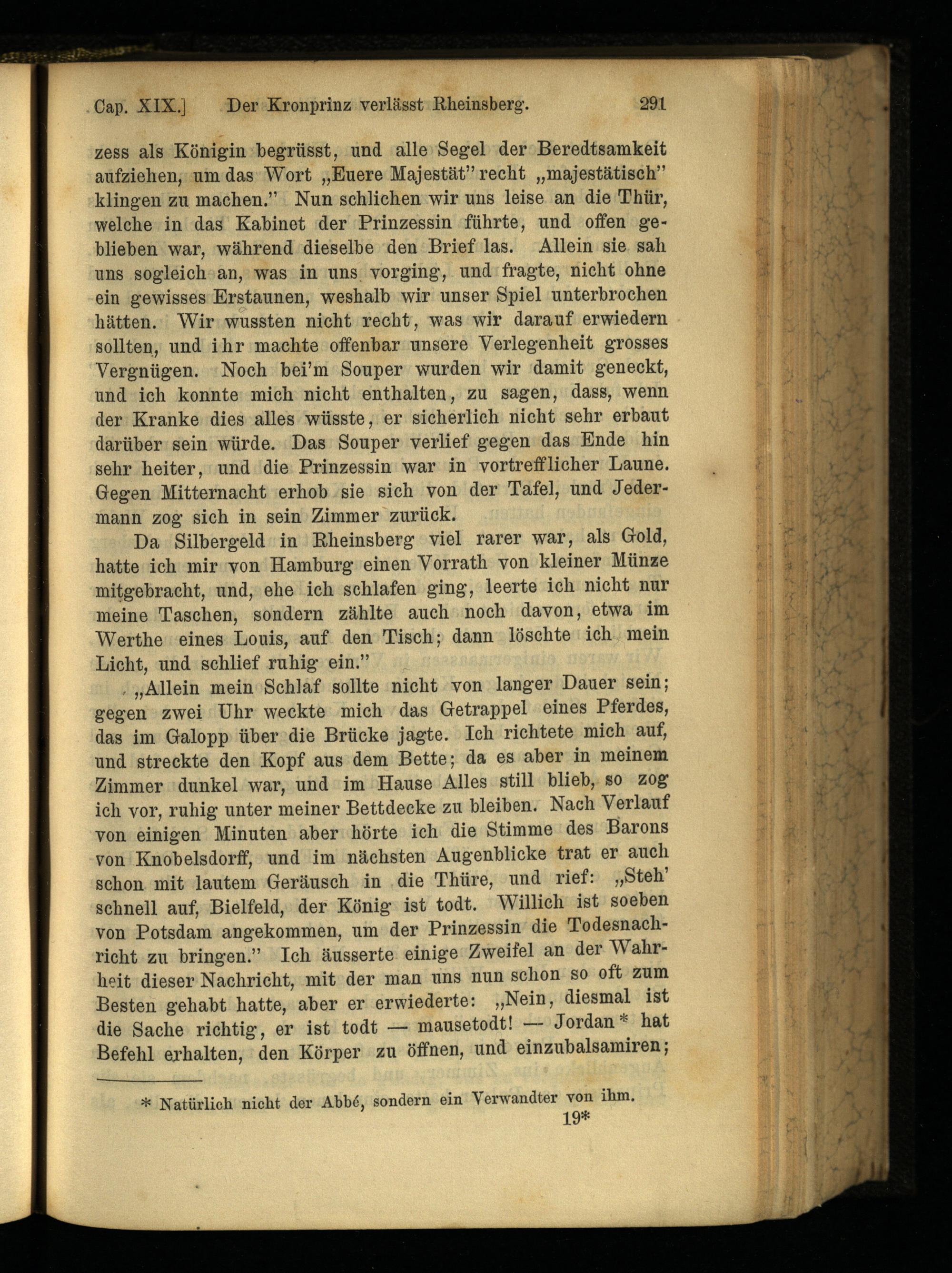 Capitel XIX. Der Kronprinz verlässt Rheinsberg.
