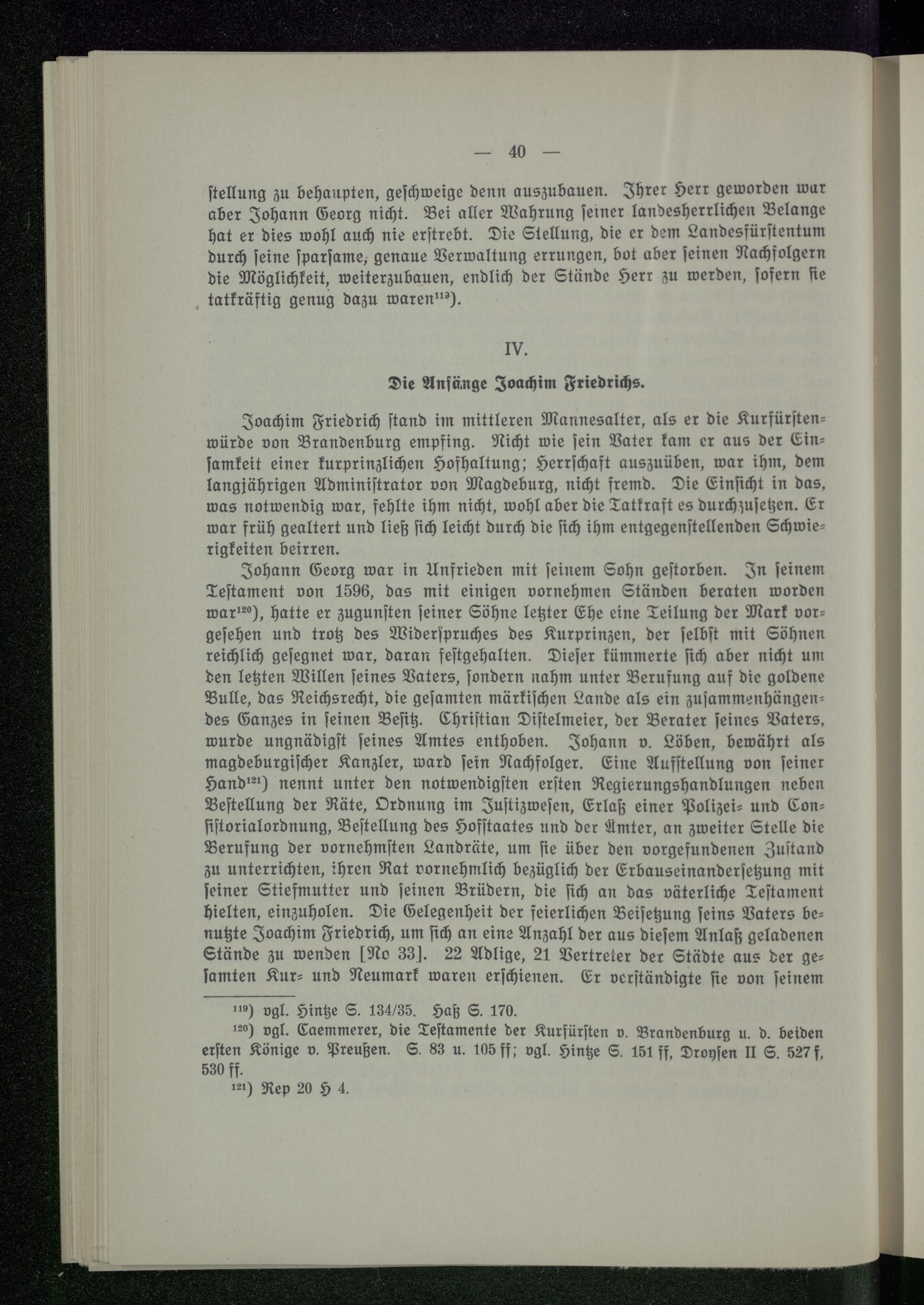 IV. Die Anfänge Joachim Friedrichs.