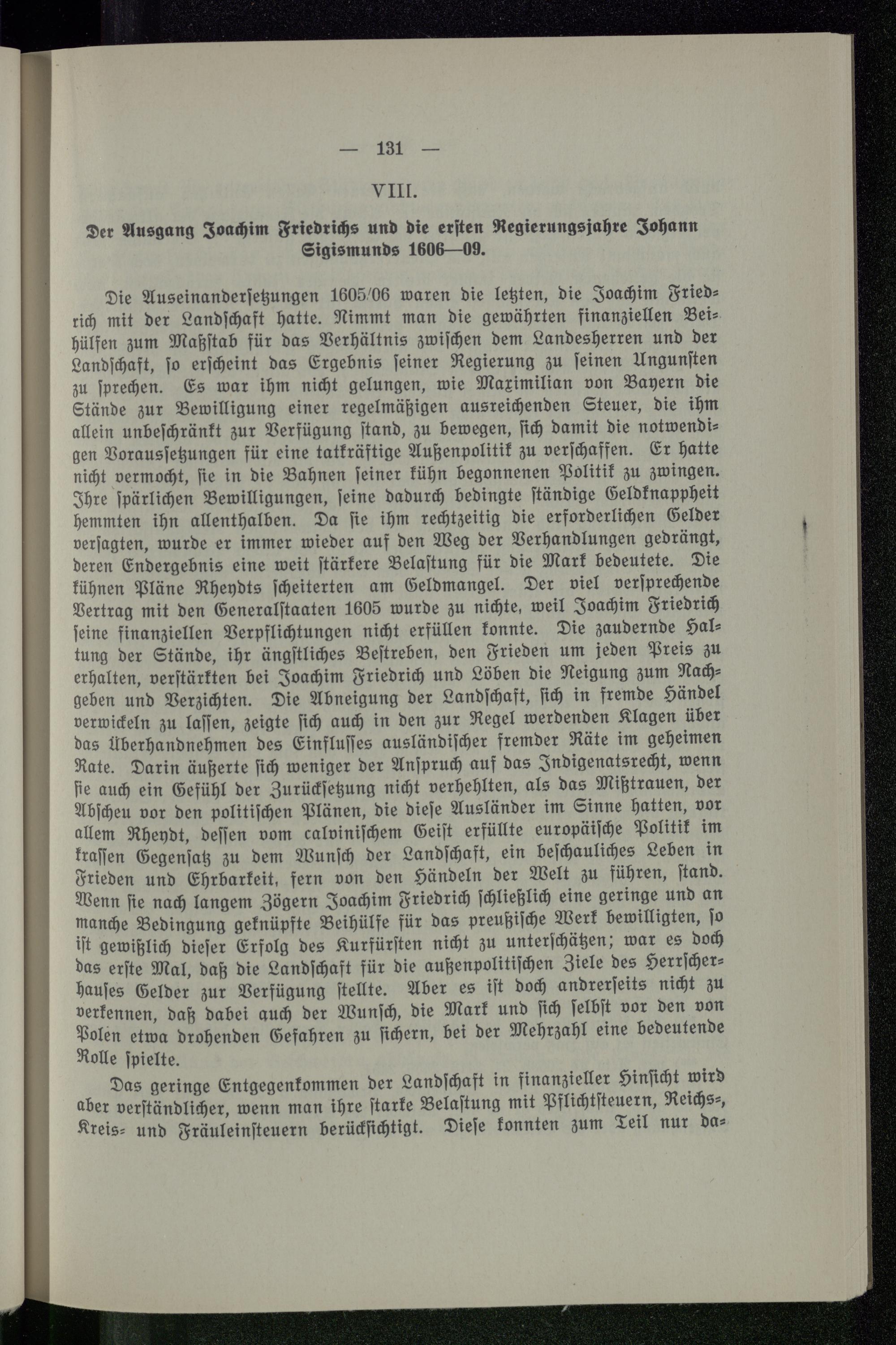 VIII. Der Ausgang Joachim Friedrichs und die ersten Regierungsjahre Johann Sigismunds 1606-09.