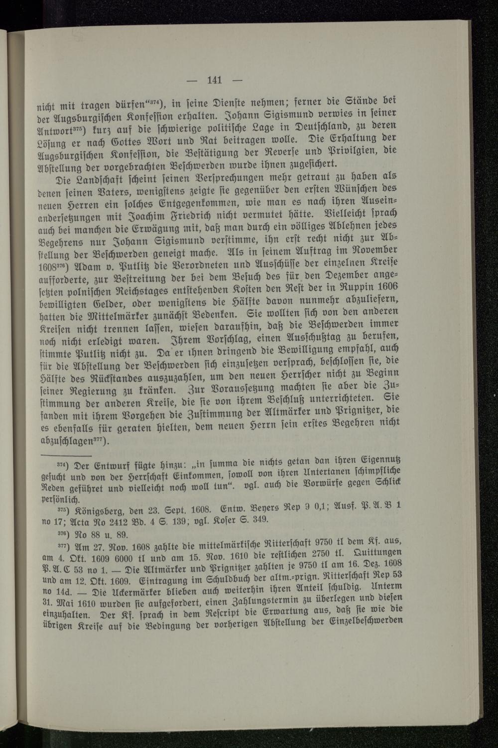 VIII. Der Ausgang Joachim Friedrichs und die ersten Regierungsjahre Johann Sigismunds...