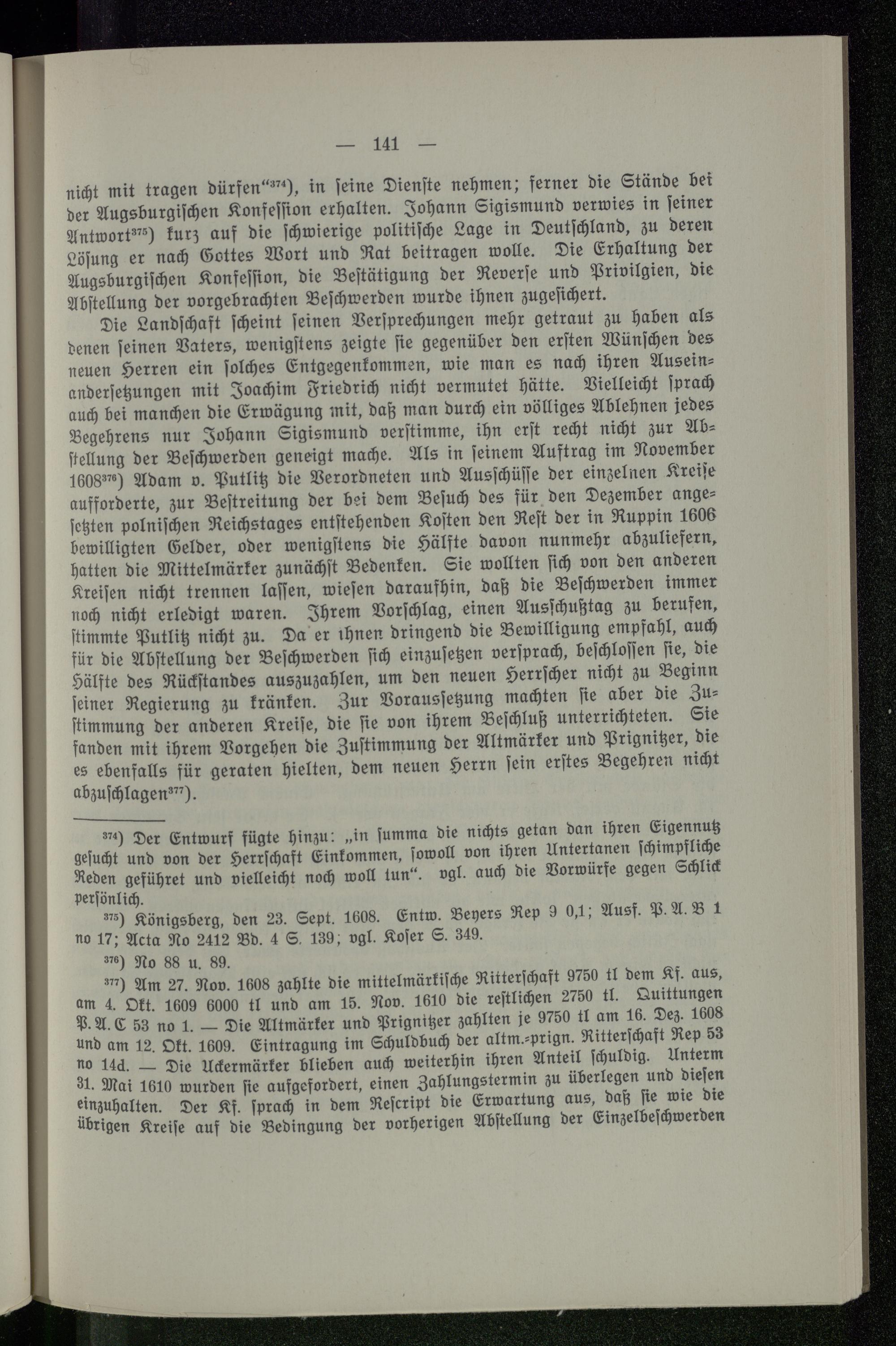 VIII. Der Ausgang Joachim Friedrichs und die ersten Regierungsjahre Johann Sigismunds 1606-09.