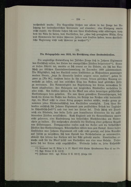 IX. Die Kriegsgefahr von 1610, die Errichtung einer Landesdefension.